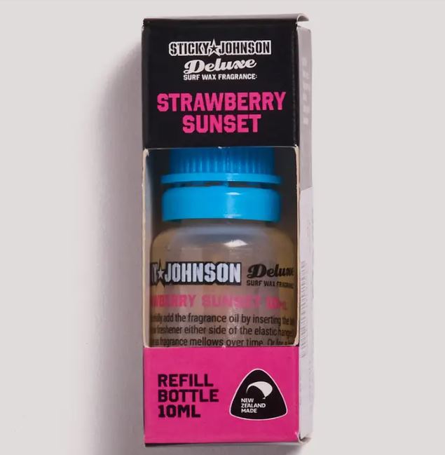 Top up your Sticky Johnson Reusable Air Freshener with our 10ml Refill Vials — Designed to keep the good vibes (and scents) going strong. Packed with the same epic surf wax-inspired aromas, each vial gives your air freshener a fresh hit that’ll last. Choose from Sweet Aloha Cola, Strawberry Sunset, Mango Sunrise, or Tropical Coconut. Just refill, refresh, and ride the wave of good smells.