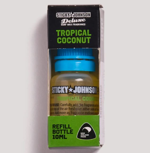 Top up your Sticky Johnson Reusable Air Freshener with our 10ml Refill Vials — Designed to keep the good vibes (and scents) going strong. Packed with the same epic surf wax-inspired aromas, each vial gives your air freshener a fresh hit that’ll last. Choose from Sweet Aloha Cola, Strawberry Sunset, Mango Sunrise, or Tropical Coconut. Just refill, refresh, and ride the wave of good smells.