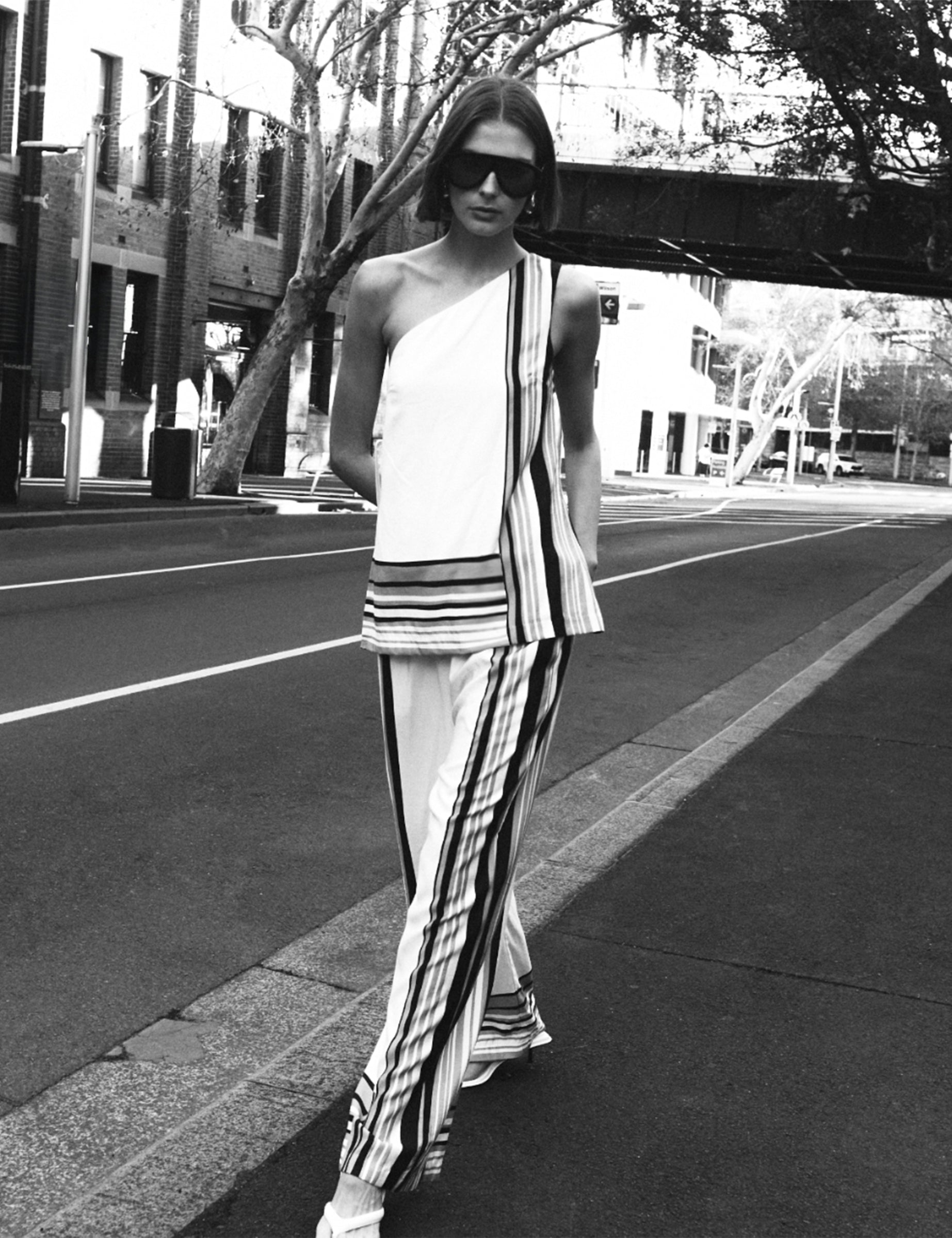 The Amari Stripe Relaxed Wide-Leg Low Rise Pants offer an elevated take on effortless dressing. Crafted from a luxe viscose blend twill, this wide-leg silhouette falls fluidly through the leg for a relaxed yet refined finish. Designed to sit comfortably on the waist, the clean lines are complemented by statement spliced stripe detailing that elongates the silhouette. An easy pull-on style, these pants transition seamlessly from day to evening and pair perfectly as a co-ord with the matching Amari One Shoulder Top for a modern, coordinated look.