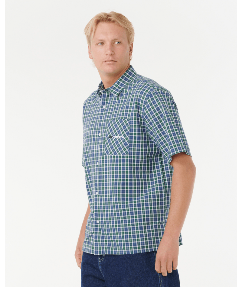 RIP CURL ARCHIVE SCRIPT PLAID S/S SHIRT - LIGHT NAVY