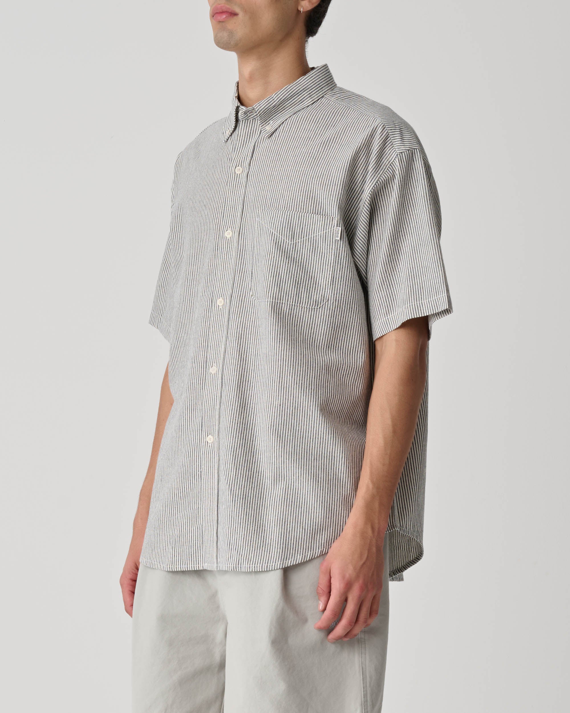 S/DOUBLE BAY STRIPE SS CLASSIC SHIRT - BLACK/WHITE STRIPE