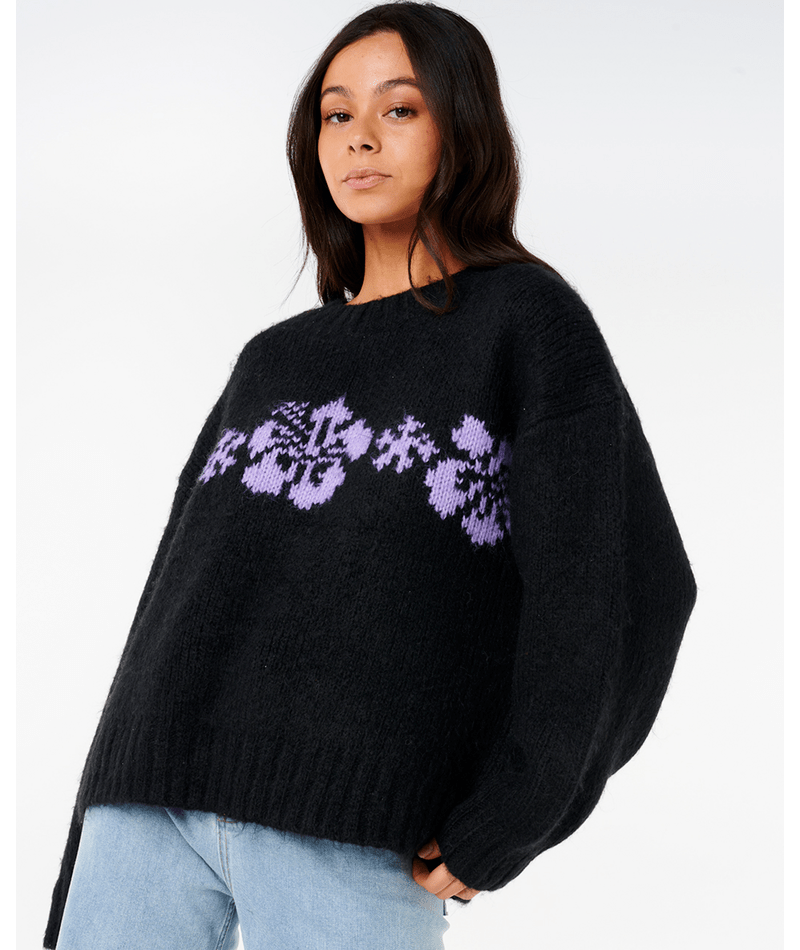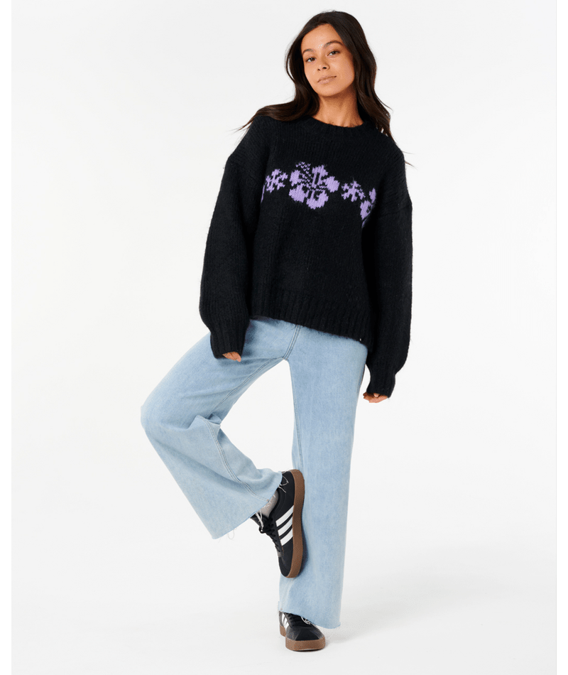 CALA NIGHTS HIBISCUS KNIT CREW - BLACK