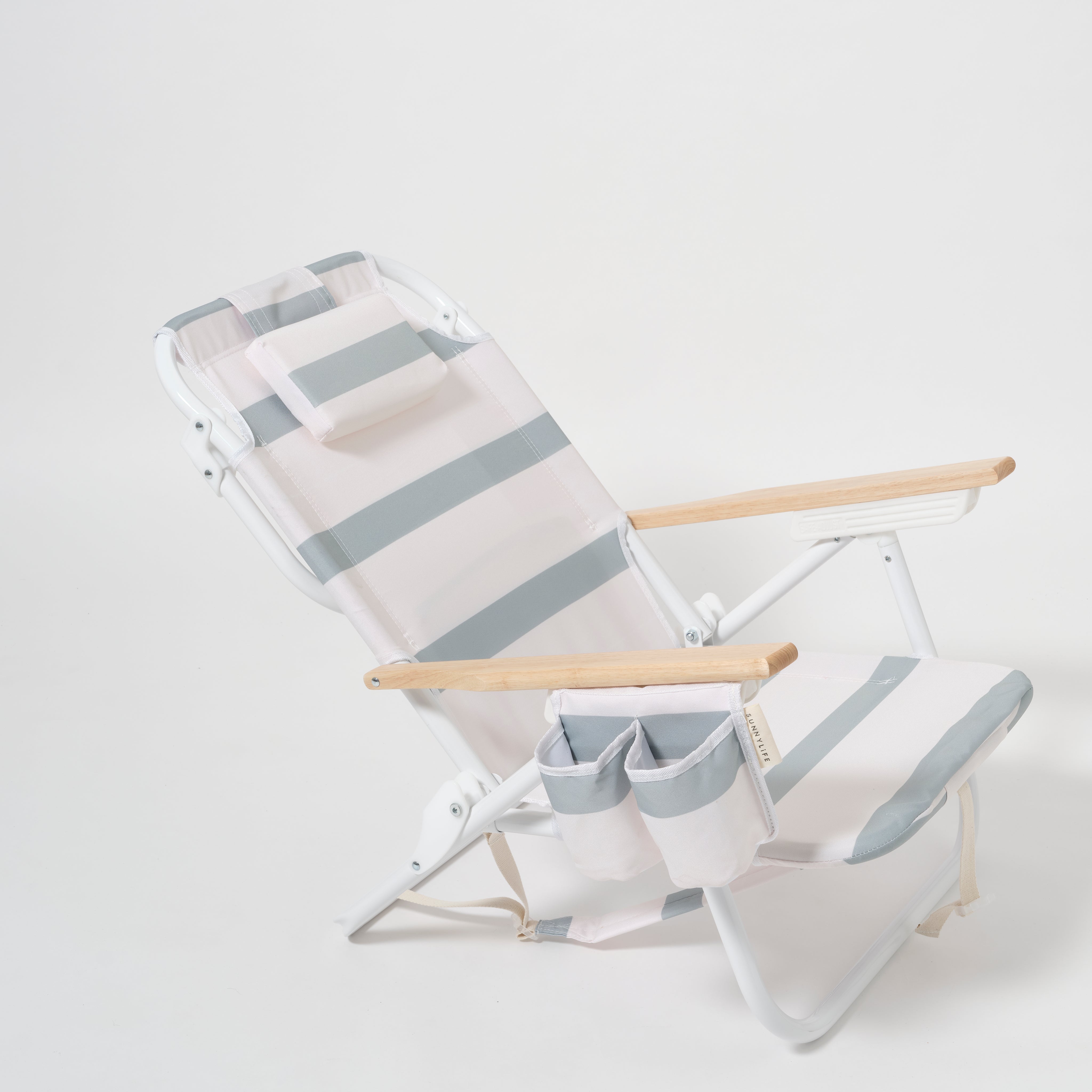 )Recline in comfort with SUNNYLiFE's most premium outdoor seat. The Deluxe Beach Chair has everything you could want to lean into all summer long.