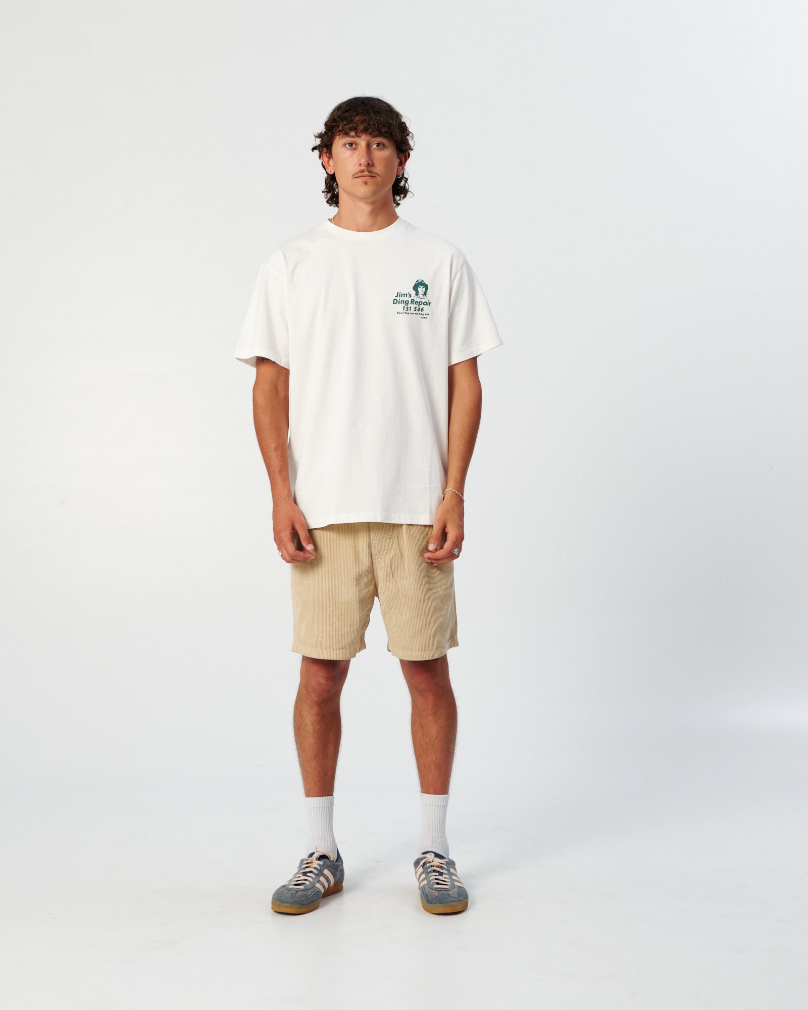 The Dings Tee is cut from our signature 230gsm cotton jersey — a touch heavier than most tees on the market and built to hold its shape. A rework of one of our best sellers, it’s been washed twice to minimise shrinkage and deliver that lived-in feel from day one. All artwork is created in-house in our Bondi studio.