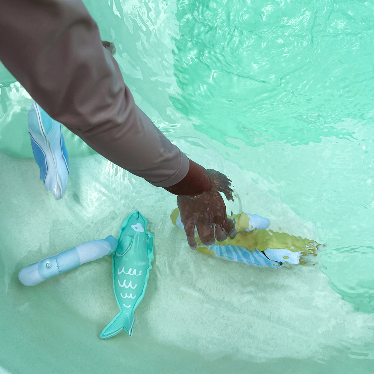 40% Sand, 40% Natural Rubber, 20% PolyesterDive into summer, SUNNYLiFE Dive Buddies are made for water play and skill development. Boost water confidence, make a splash, and experience the best of summer with summer's cutest accessory.Set of 6. Made from sustainable natural rubber. Develops children's diving skills.36 x 32 x 5