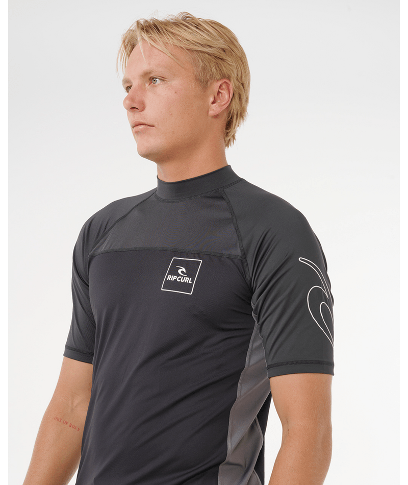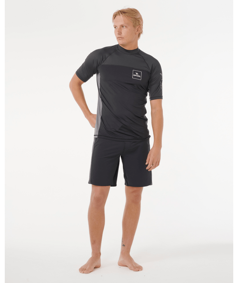 RIP CURL DRIVE UPF SHORT SLEEVE RASH VEST - BLACK