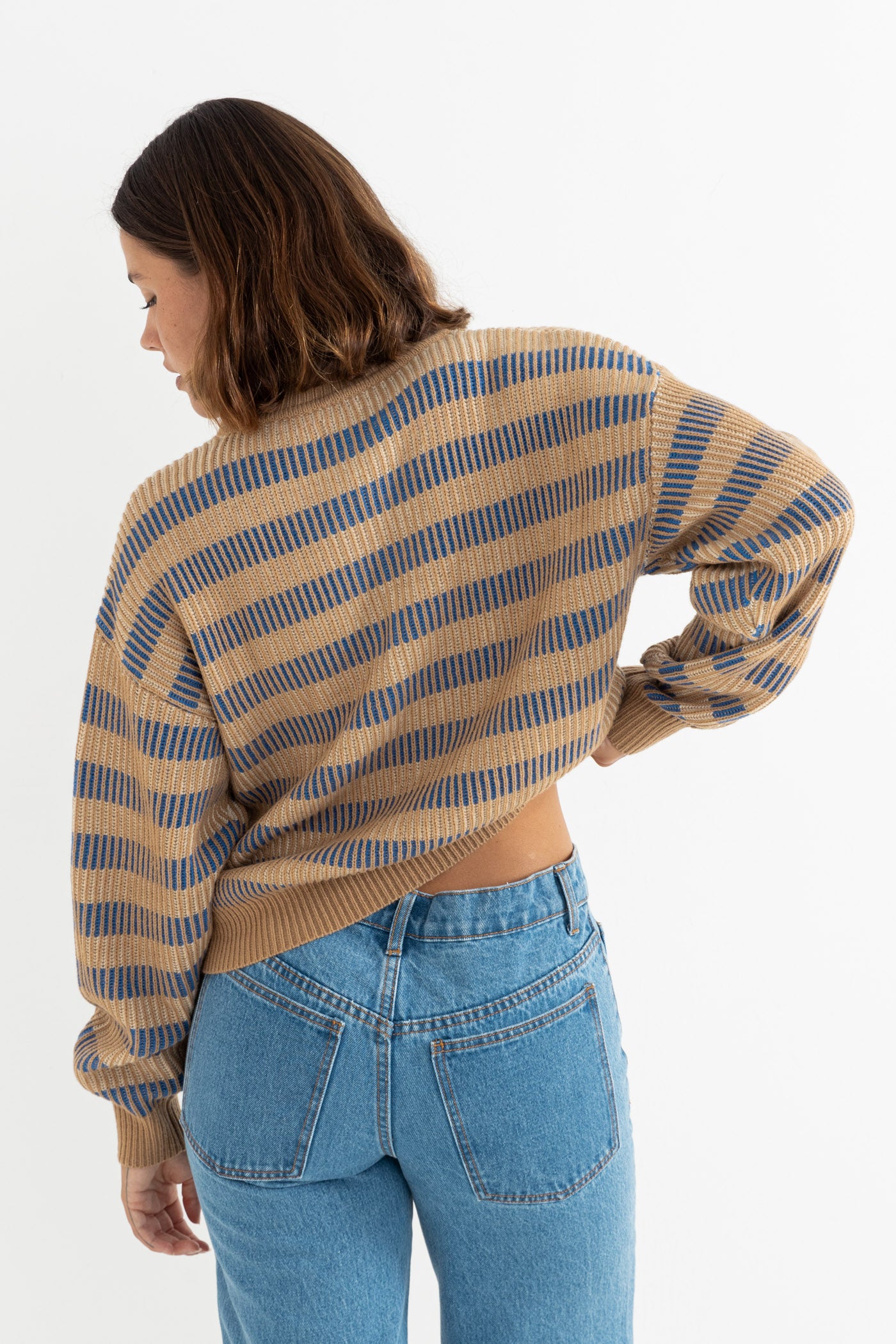 RHYTHM ESTELLE QUARTER ZIP STRIPED KNIT - COBALT