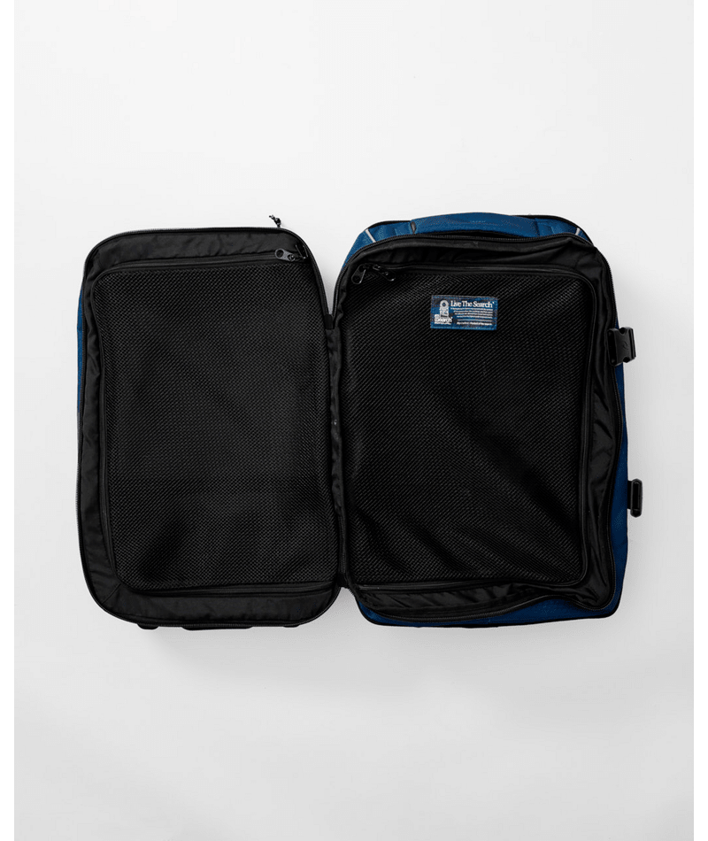 Designed for the traveler who wants it all, this 45L carry-on features a laptop section, compression molded EVA base for toughness, external straps to keep everything tight, telescopic handle, inline skate wheels, and lockable zips. Zip up and go Search.