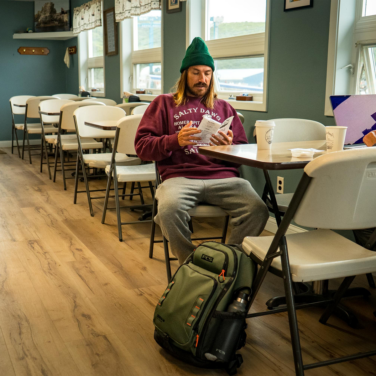 The re-emergence of the famous and functional MISSION 40L backpack with a fresh look, lighter weight, and more durable than ever. Designed to withstand the elements encountered traveling to remote surf and adventure locations, but still crosses over into your daily commute to work orforregular weekend missions.