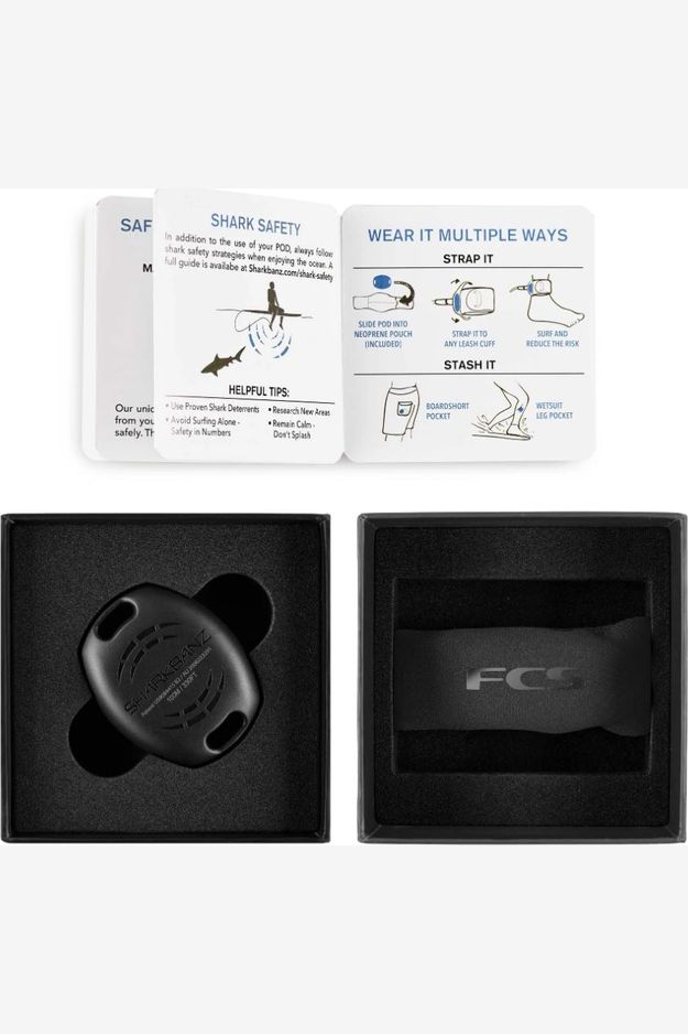 The FCS x Sharkbanz POD is the stealthiest, most convenient shark-repellent product designed specifically for surfing. The precision design and craftsmanship of FCS meet the scientific expertise of Sharkbanz to enable surfers everywhere to reduce risk.
