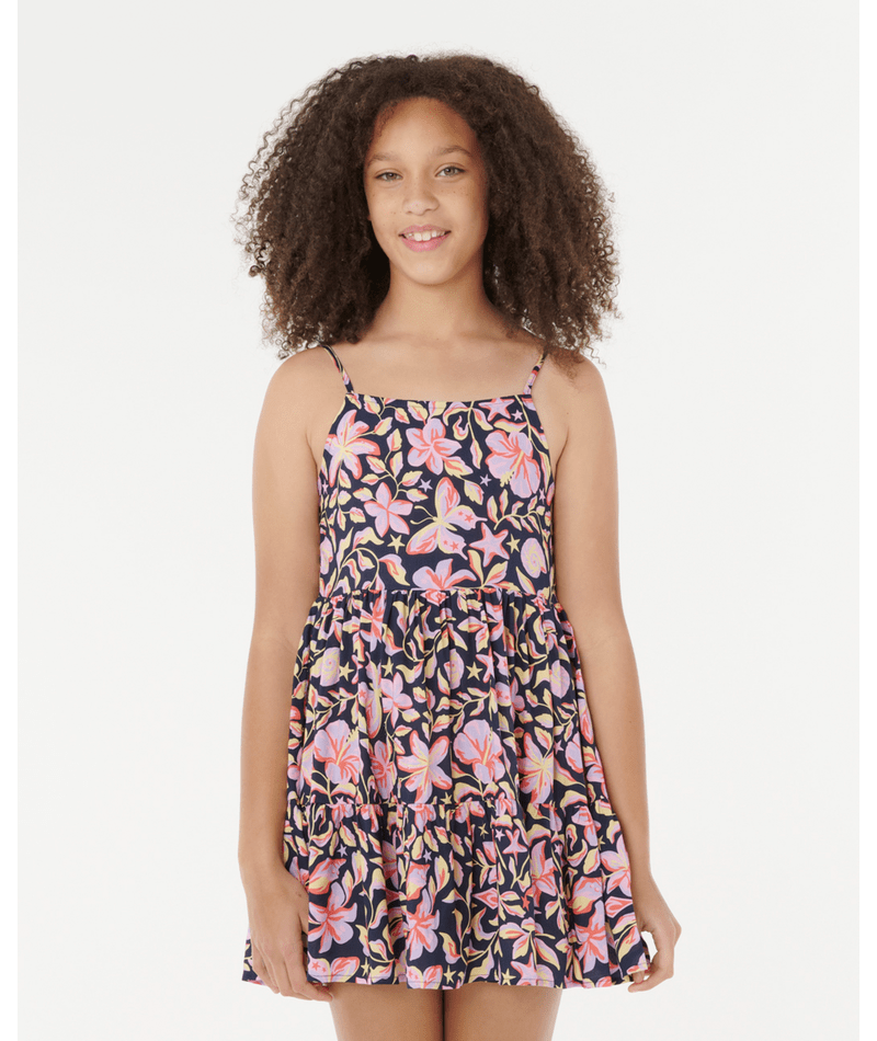 RIP CURL GIRLS SUNSET SKIES TIER DRESS - NAVY