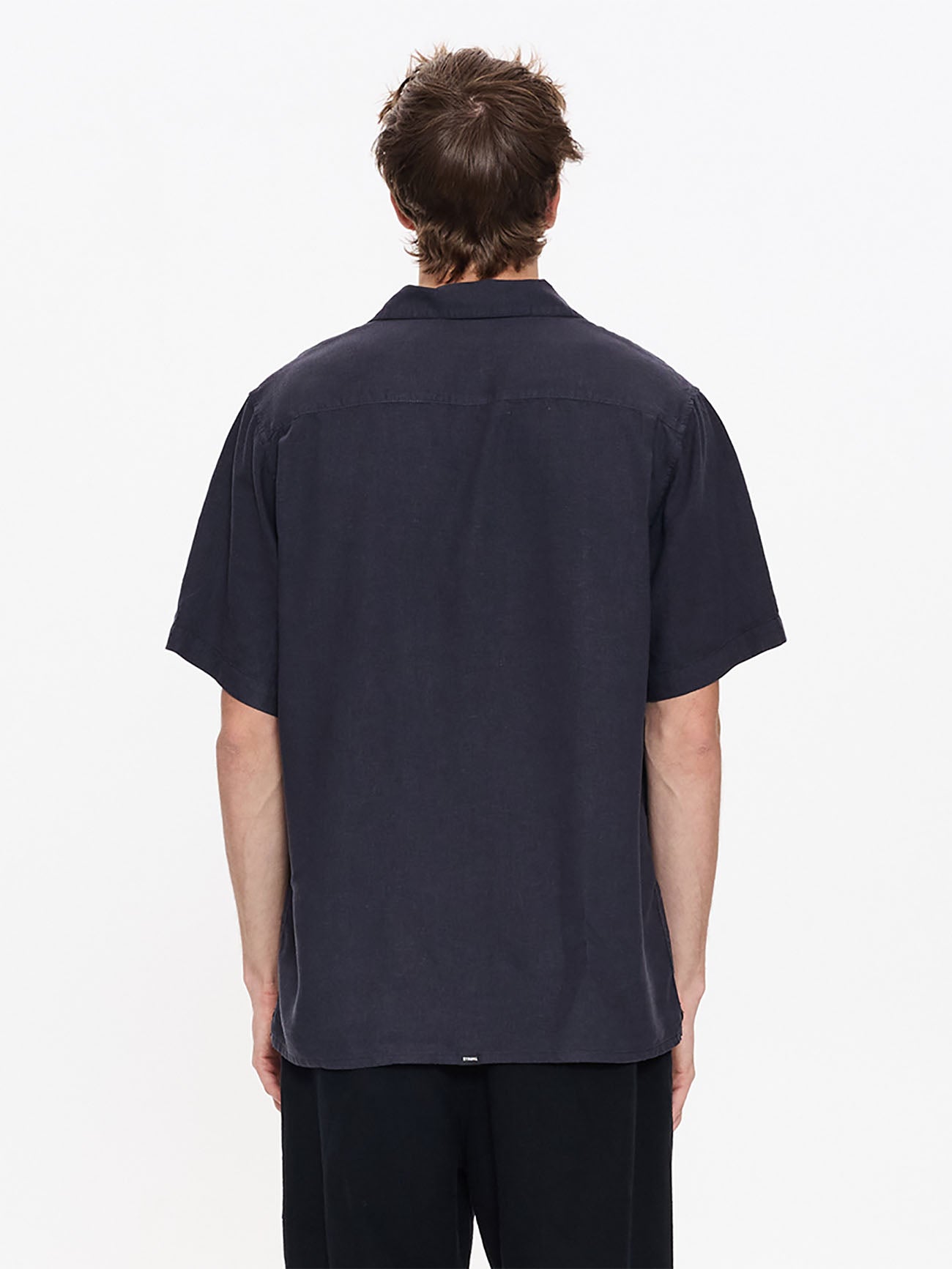 THRILLS HEMP MINIMAL THRILLS CONTRAST STITCH CROPPED BOWLING SHIRT - EBONY