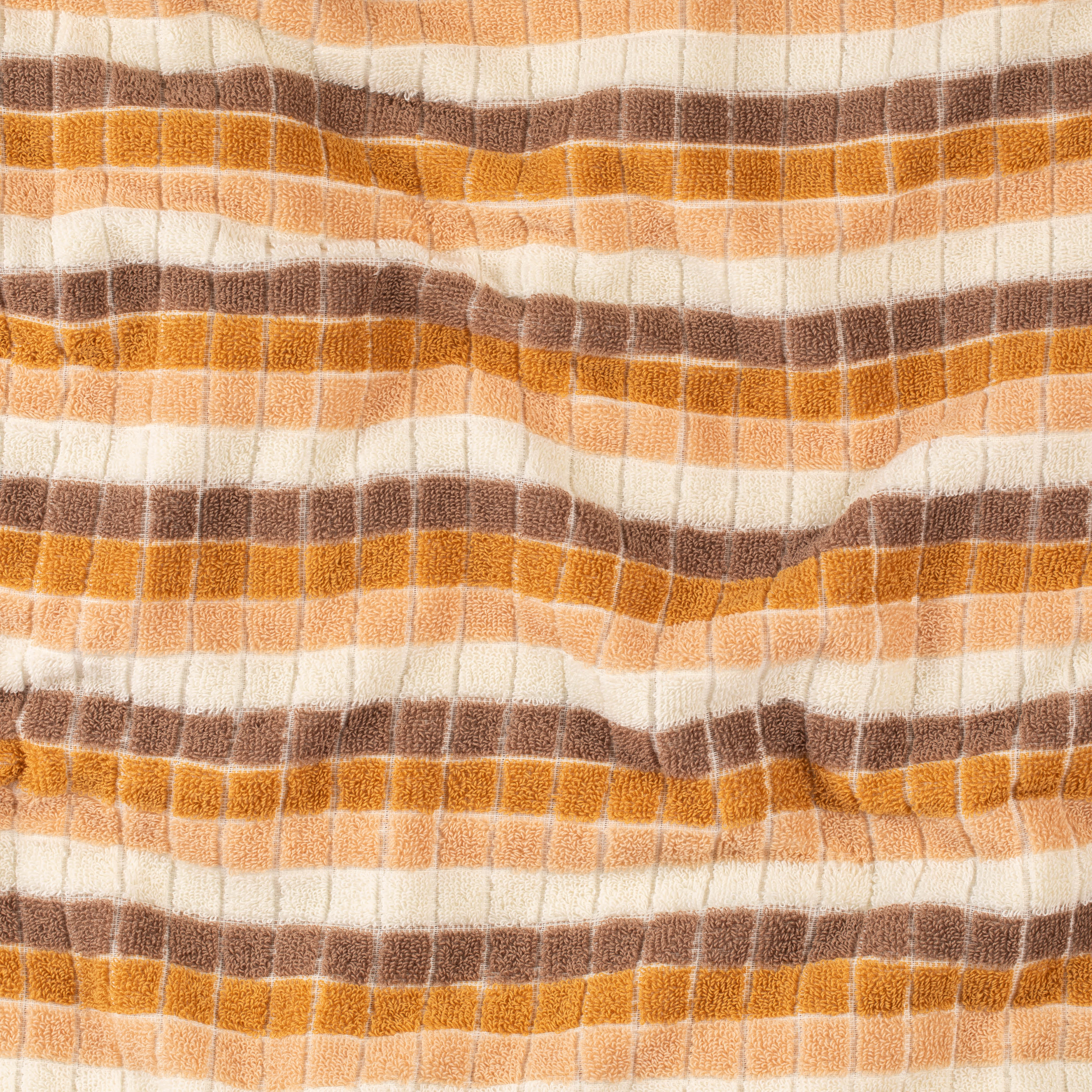 Step back in time with Horizon. This retro-inspired towel combines luxe terry with debossed squares and nostalgic 70s-style stripes. Perfect for those who love a retro vibe with a modern twist.