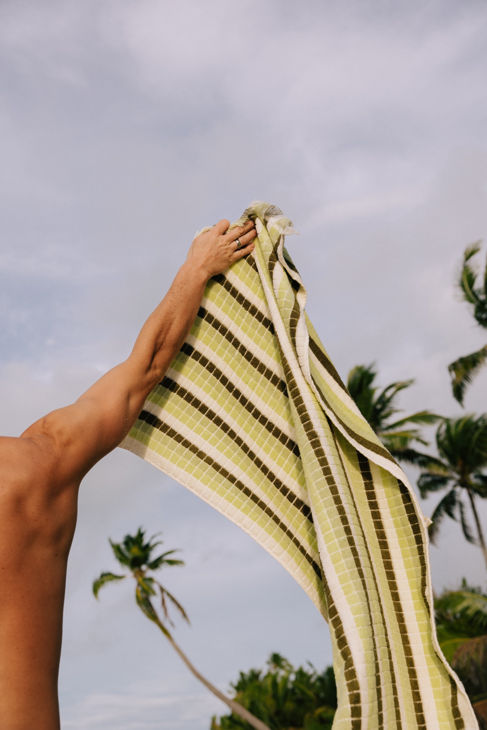 Step back in time with Horizon. This retro-inspired towel combines luxe terry with debossed squares and nostalgic 70s-style stripes. Perfect for those who love a retro vibe with a modern twist.
