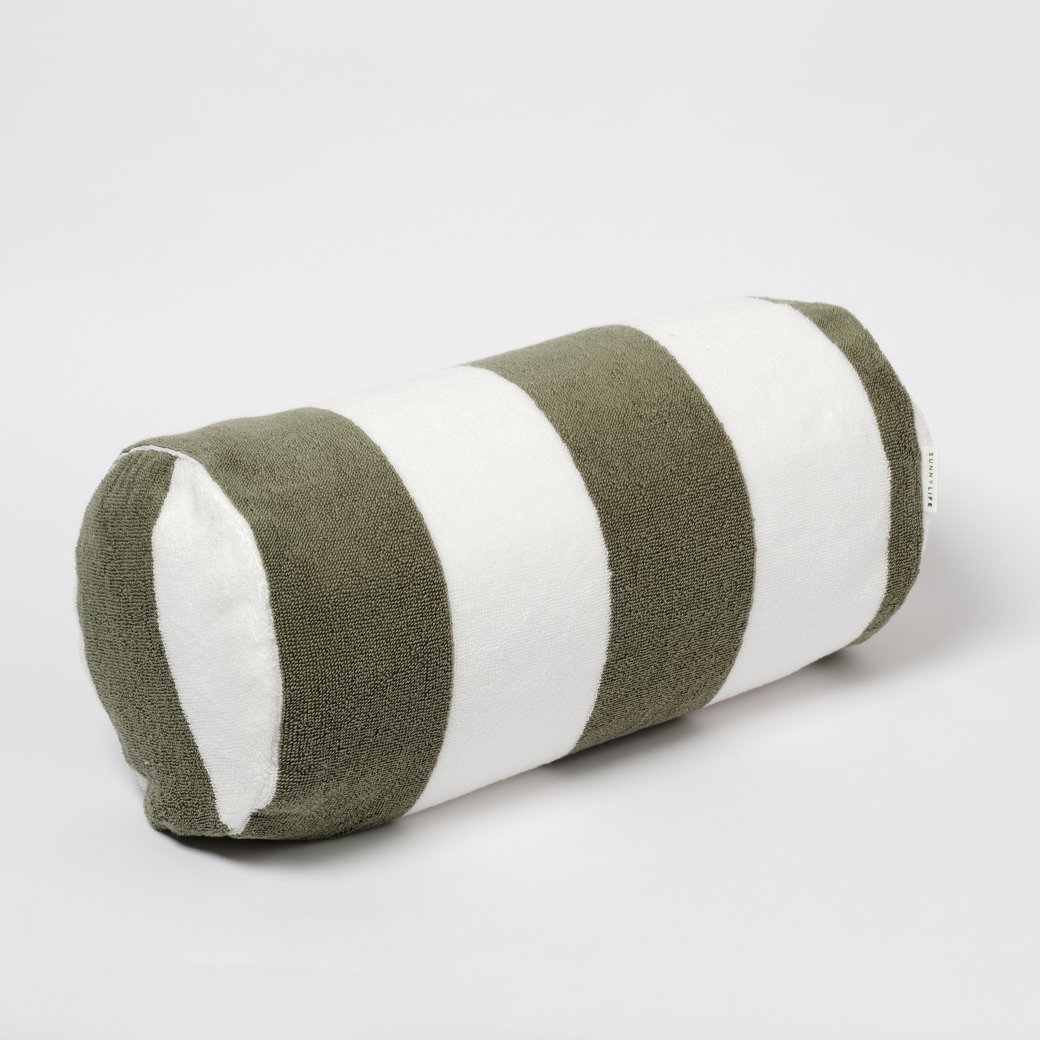 SUNNYLIFE INFLATABLE BEACH PILLOW THE VACAY OLIVE STRIPE