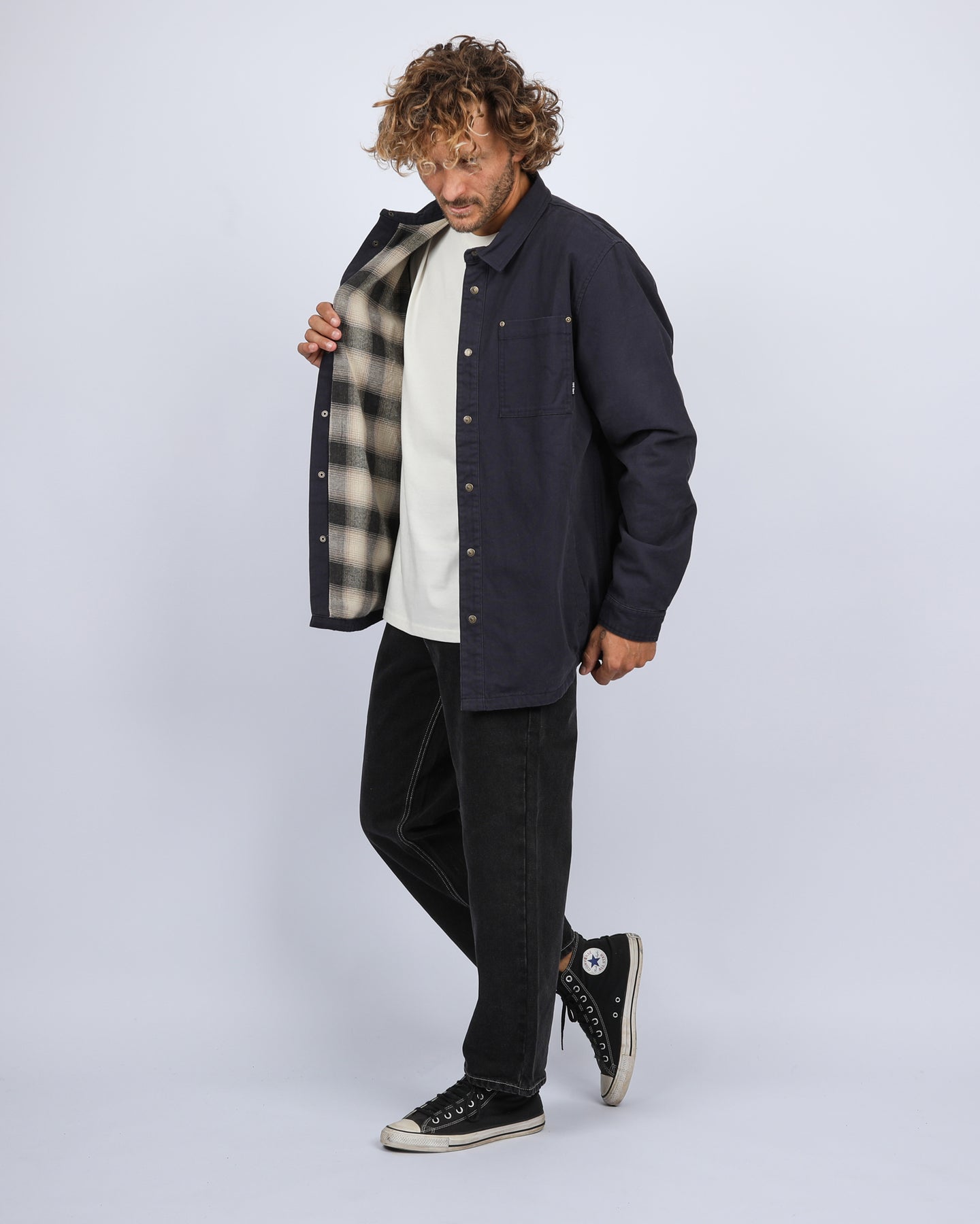 Channeling the raw energy of the North Shore, the T&C Kauai Jacket merges the grit of vintage workwear with the soul of surf culture. Constructed from heavyweight, vintage-washed nail head canvas, it offers both durability and character. The full check flannel lining provides warmth for those early dawn patrols or breezy evening sessions.