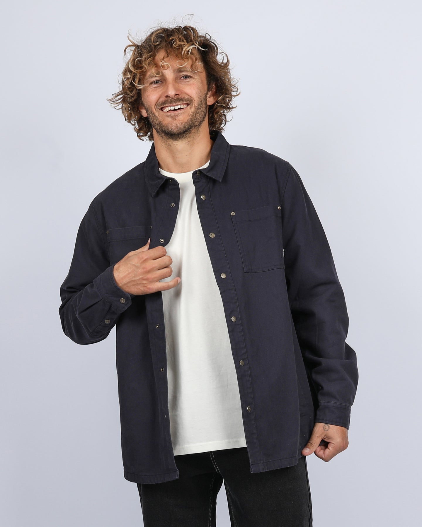 Featuring a standard fit, this jacket is designed to move with you, whether you're loading boards or navigating city streets. The snap button closure and front pockets add functional style, while the subtle T&C branding nods to its Hawaiian roots.