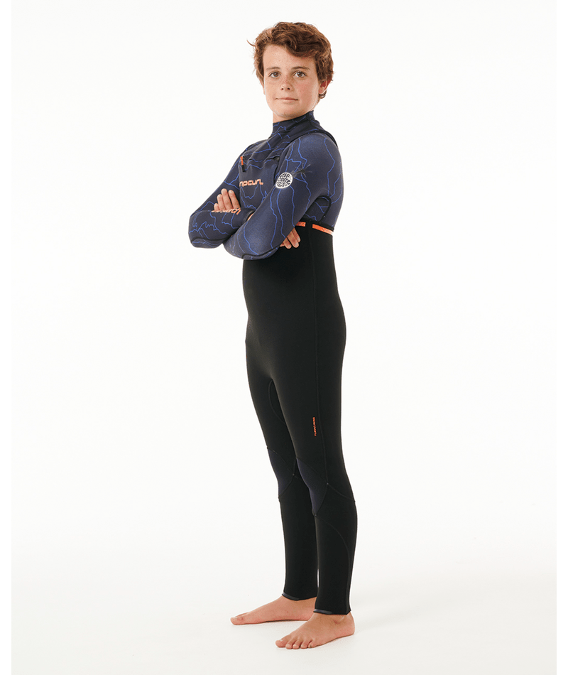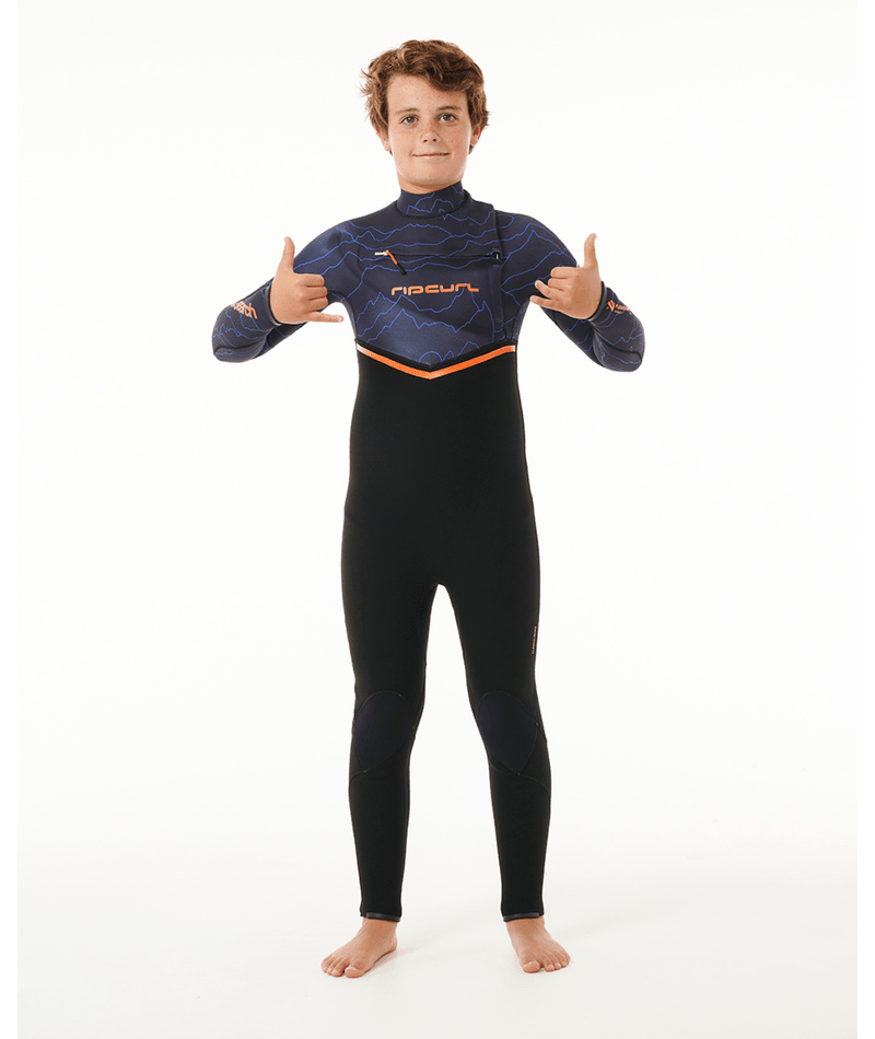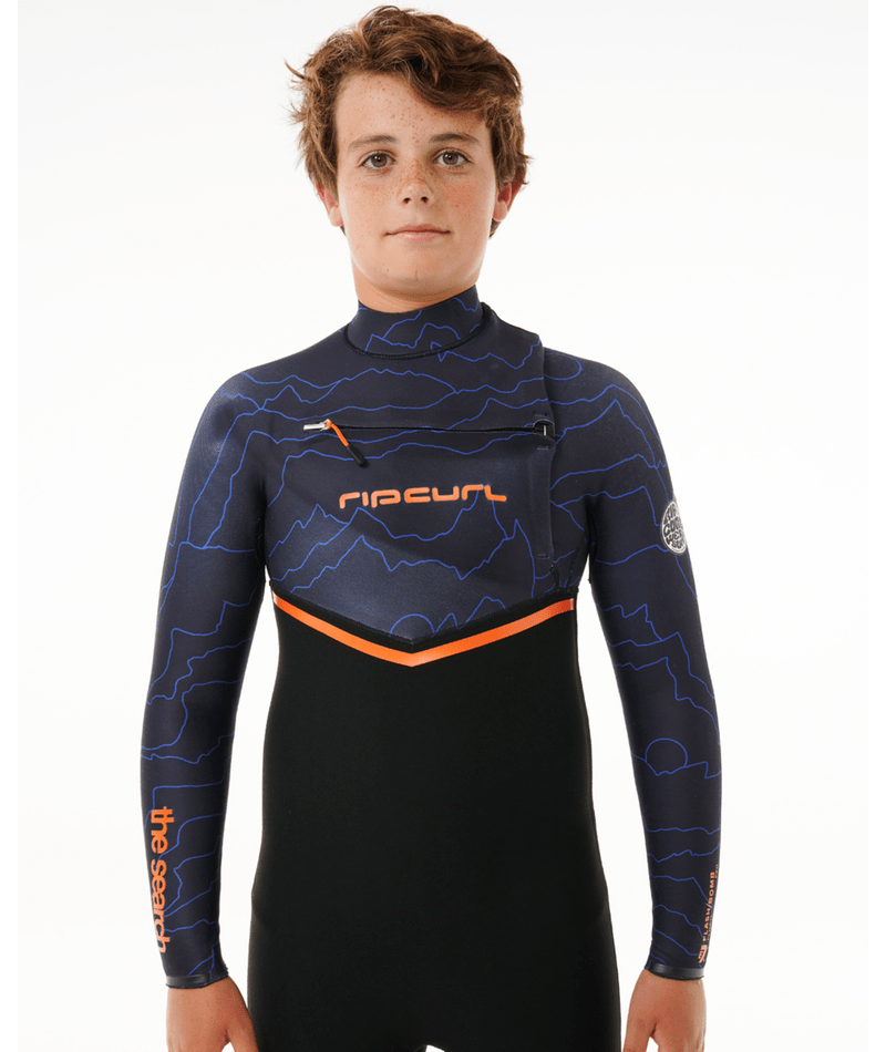Equip your young water enthusiast with the Junior Flashbomb 4/3 Chest Zip Wetsuit for their aquatic adventures. Crafted with E7 thermo lining neoprene and E6 flash lining neoprene, this wetsuit delivers excellent insulation and flexibility. The E6 flash lining tape and sealed cuffs enhance durability and water resistance. The chest zip entry system ensures easy on/off, allowing young surfers to focus on riding the waves. Experience the world's fastest drying wetsuit with the revolutionary FlashDry lining. The Flashbomb wetsuit line is dry in 30 minutes or less, making it perfect for active juniors.