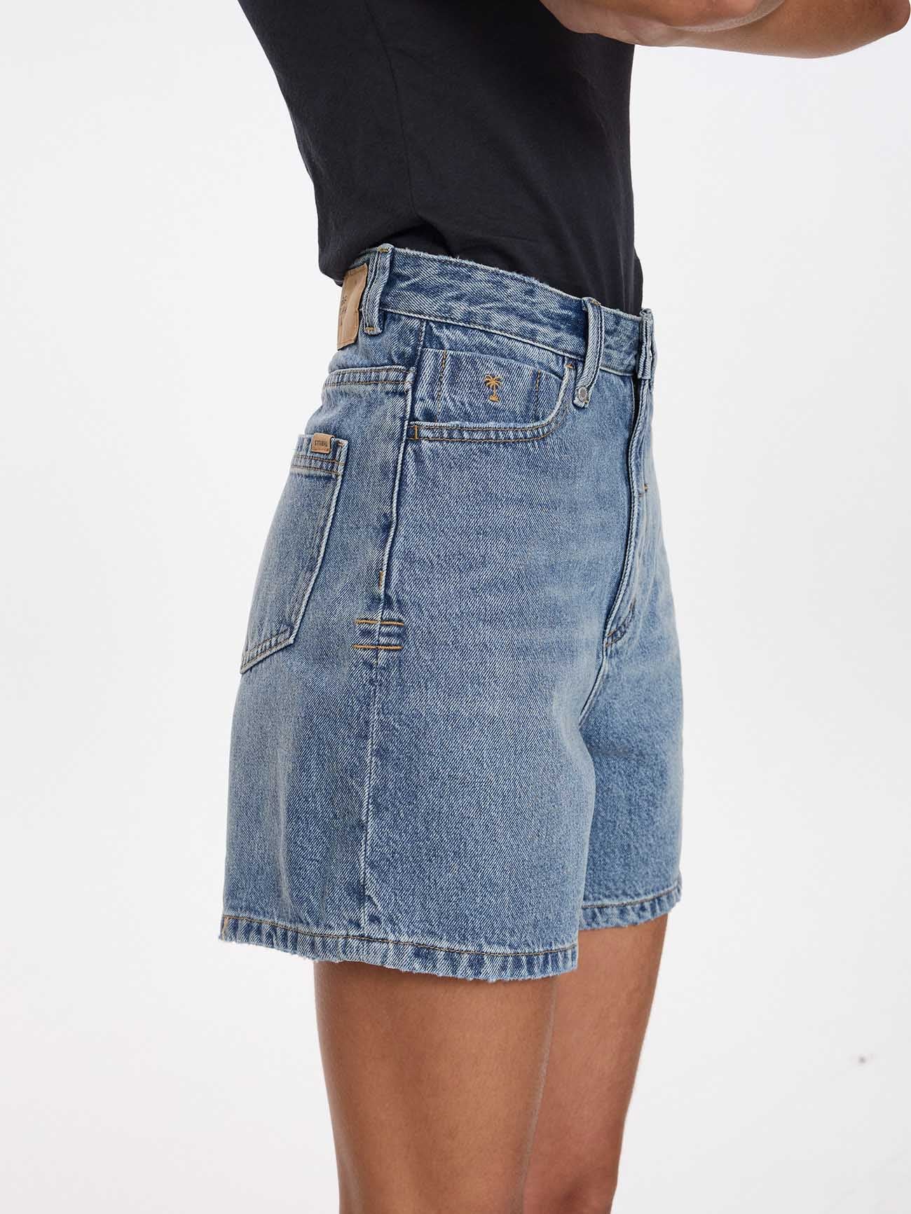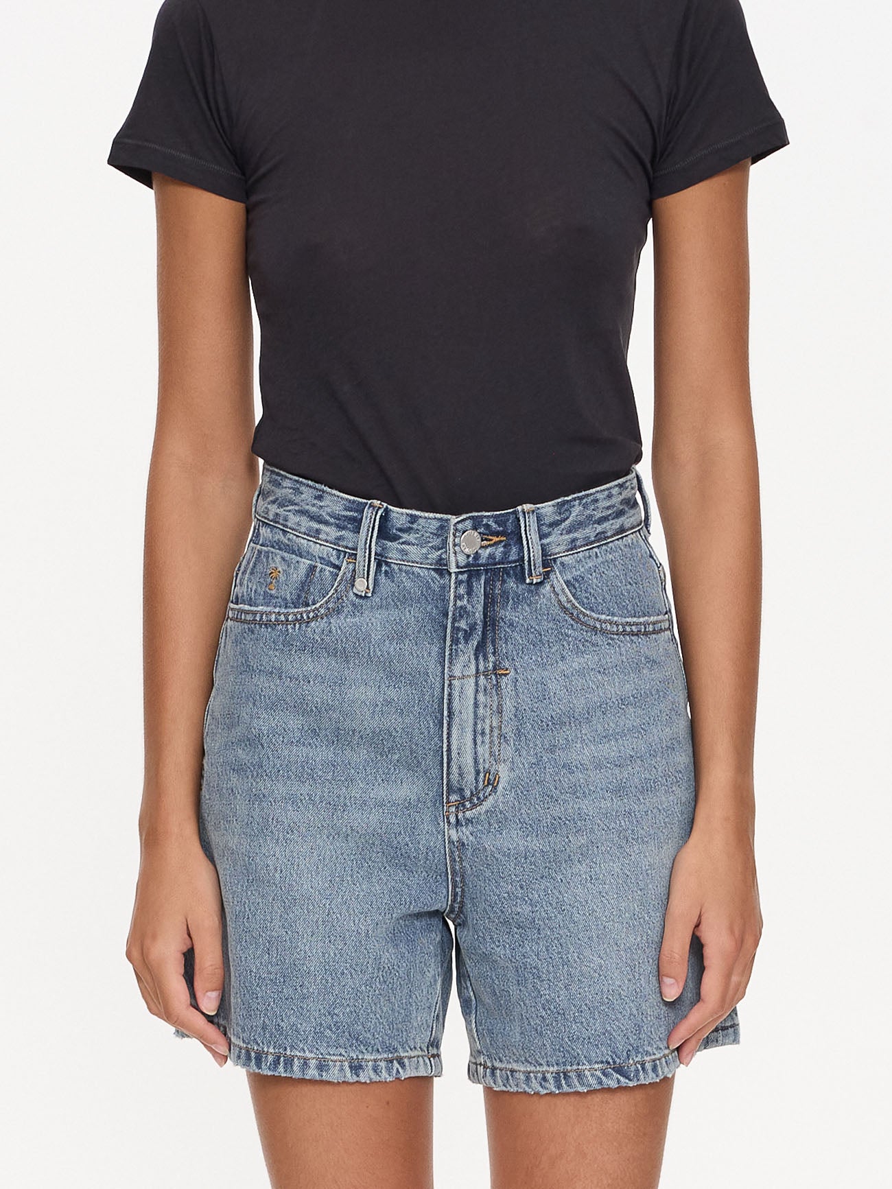 Cool, clean, and made to move, the Koko Short is a no-brainer for spring and long summer days. Crafted from a premium, midweight denim with a 60/40 cotton blend, these high-waisted shorts serve structure without sacrificing comfort. The wide hems and faded wash lean into true vintage denim shorts territory, while the 5-pocket design offers styling versatility. Whether paired with women's crop tops or women's oversized graphic tees, these casual cotton shorts are a street-ready hit.