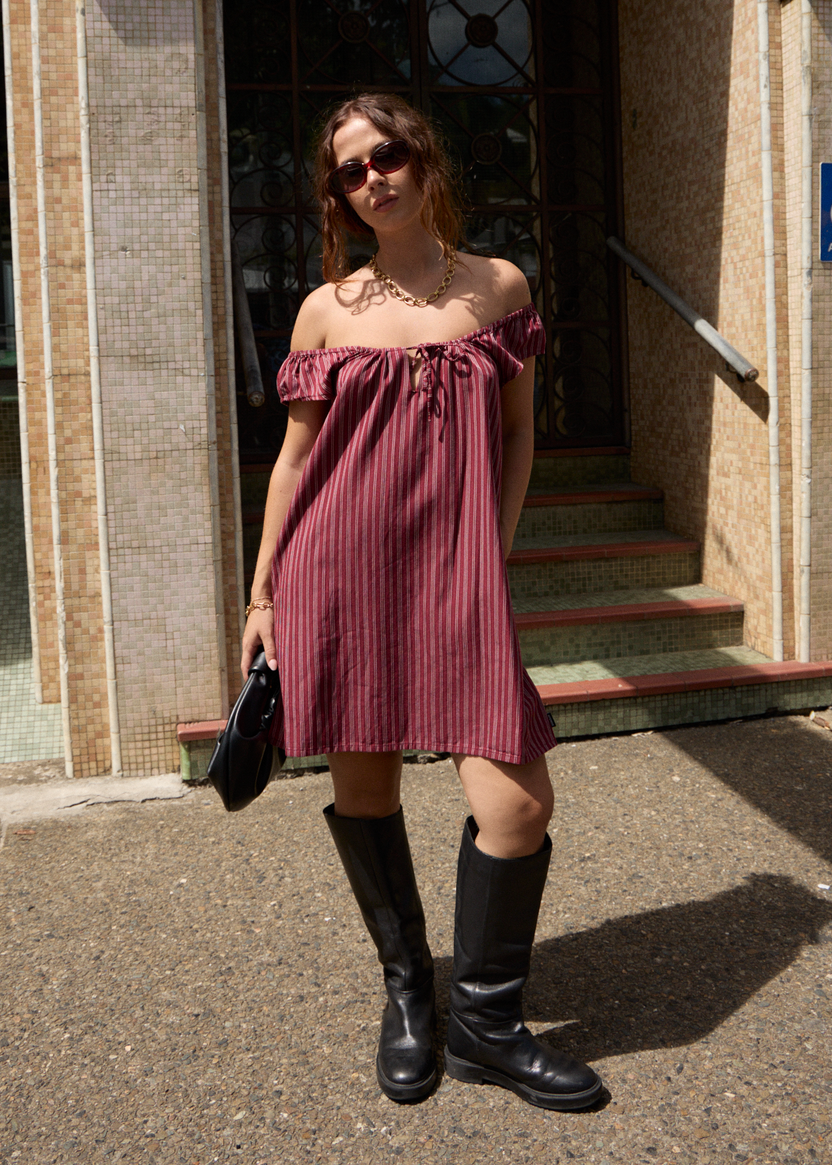 AFENDS LEDGER MINI DRESS - BURGUNDY STRIPE