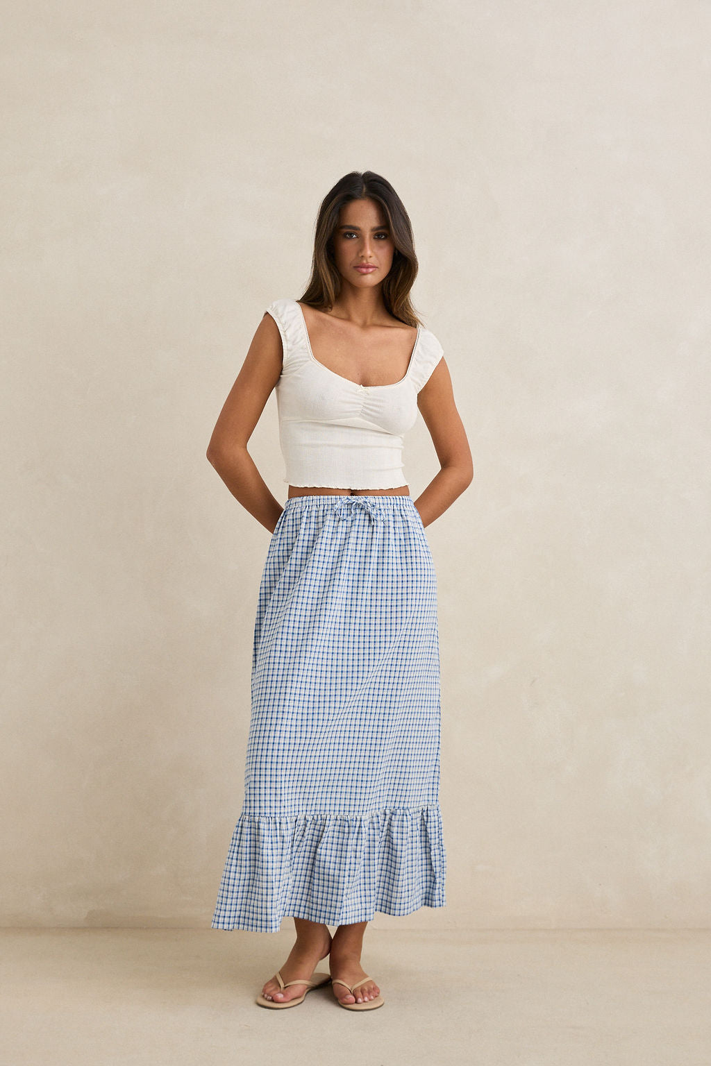 RHYTHM LOLA CHECK TIERED MAXI SKIRT - BLUE