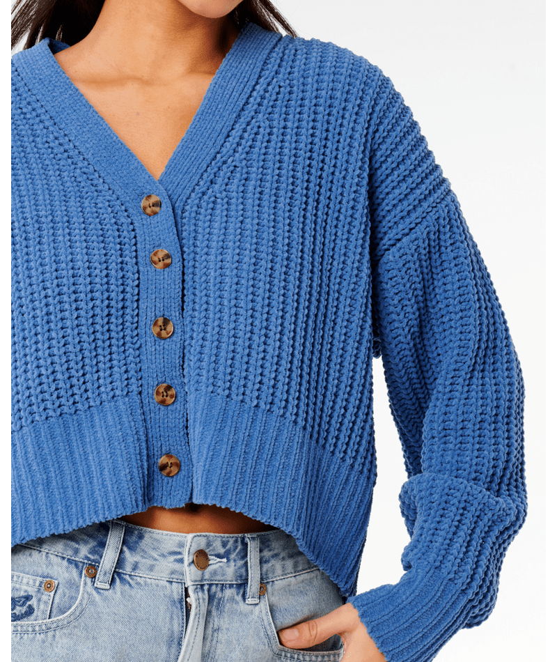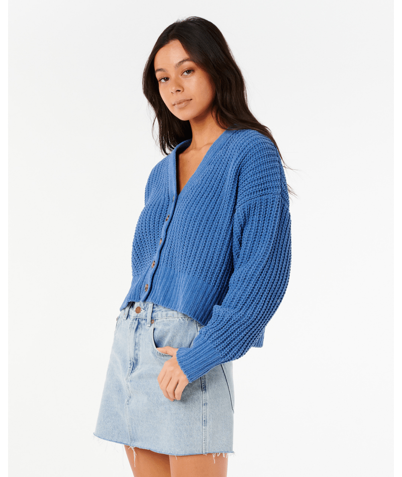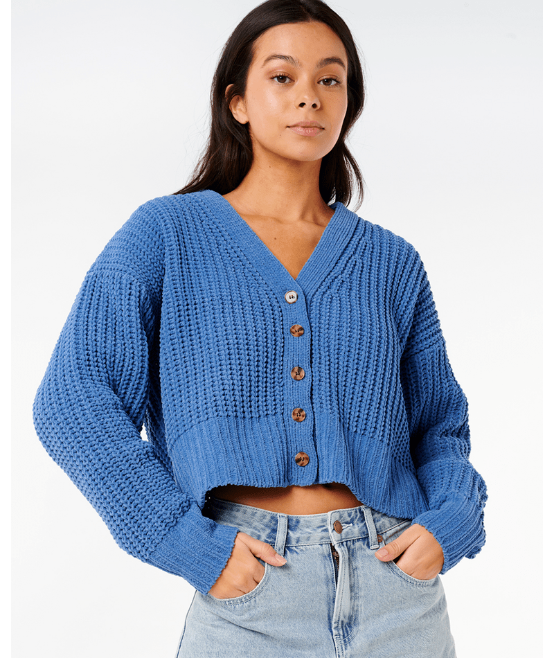 The Neon Isles Cardigan is your go-to layer for cooler nights and beach bonfire hangs. This relaxed-fit piece is made from a cotton-recycled poly blend, with texture knitting that adds a little extra style to your chill. The coconut button adds that perfect touch of laid-back surf charm, making it as easy to wear as a sunset surf session.