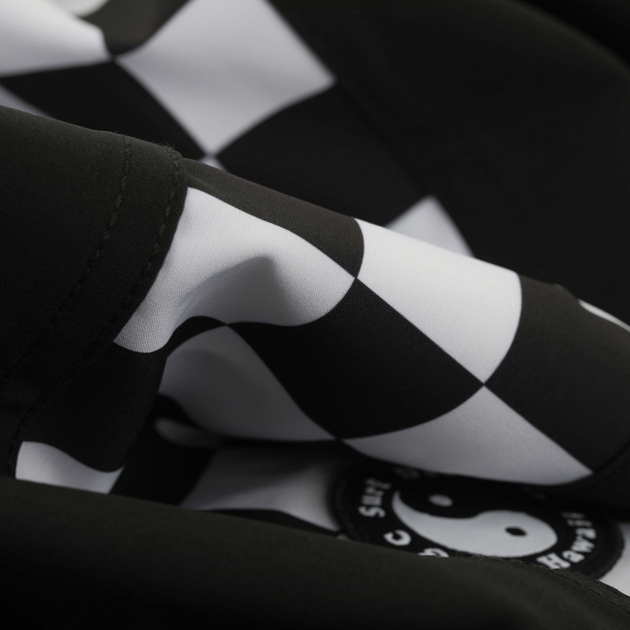 A step up version of our beloved chunk check trunk, with a printed checker board side panel print ruminant of a 1980's board spray.
