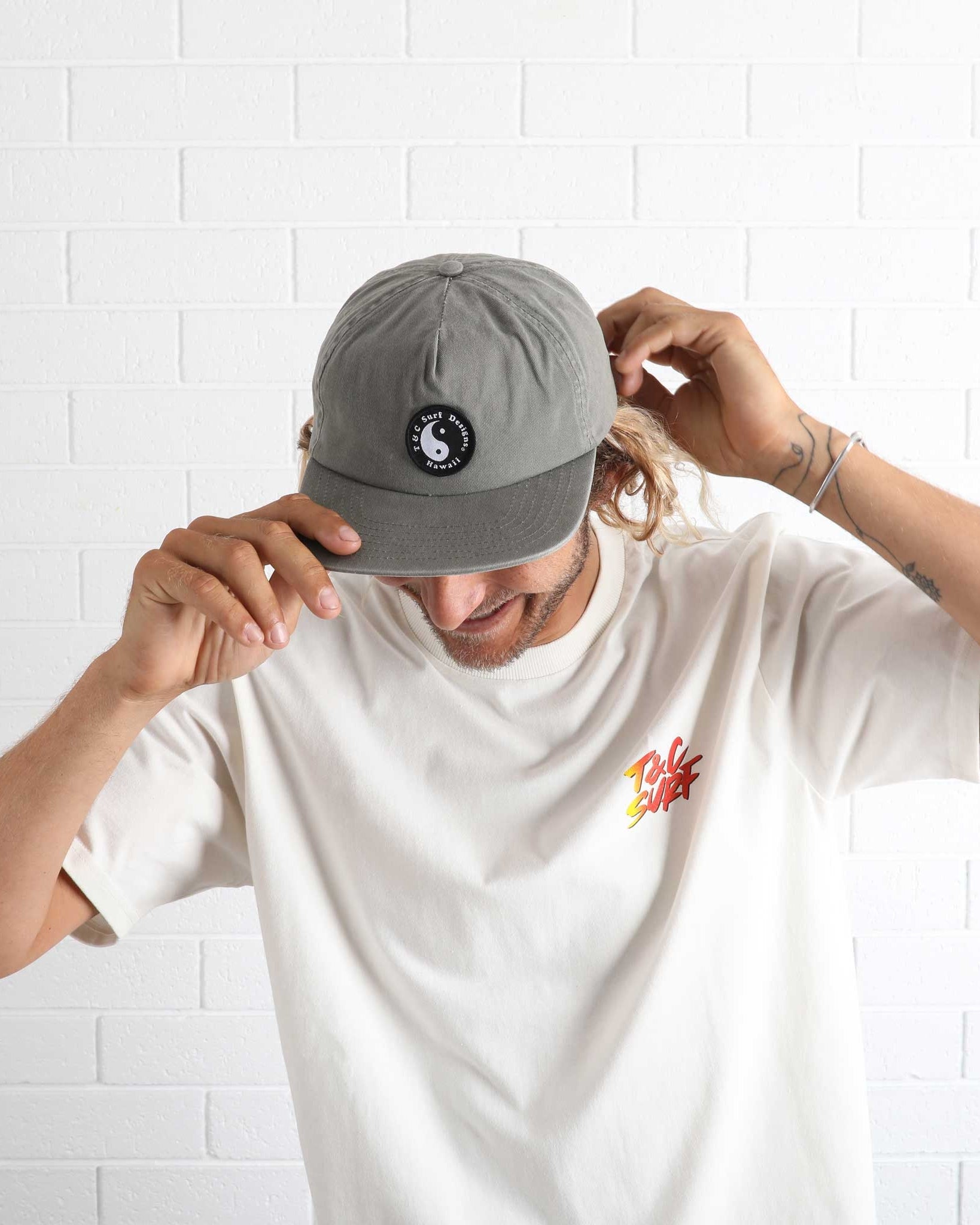 One of our most popular products is this deconstructed cotton twill snap back cap, with an OG woven patch front and centre.