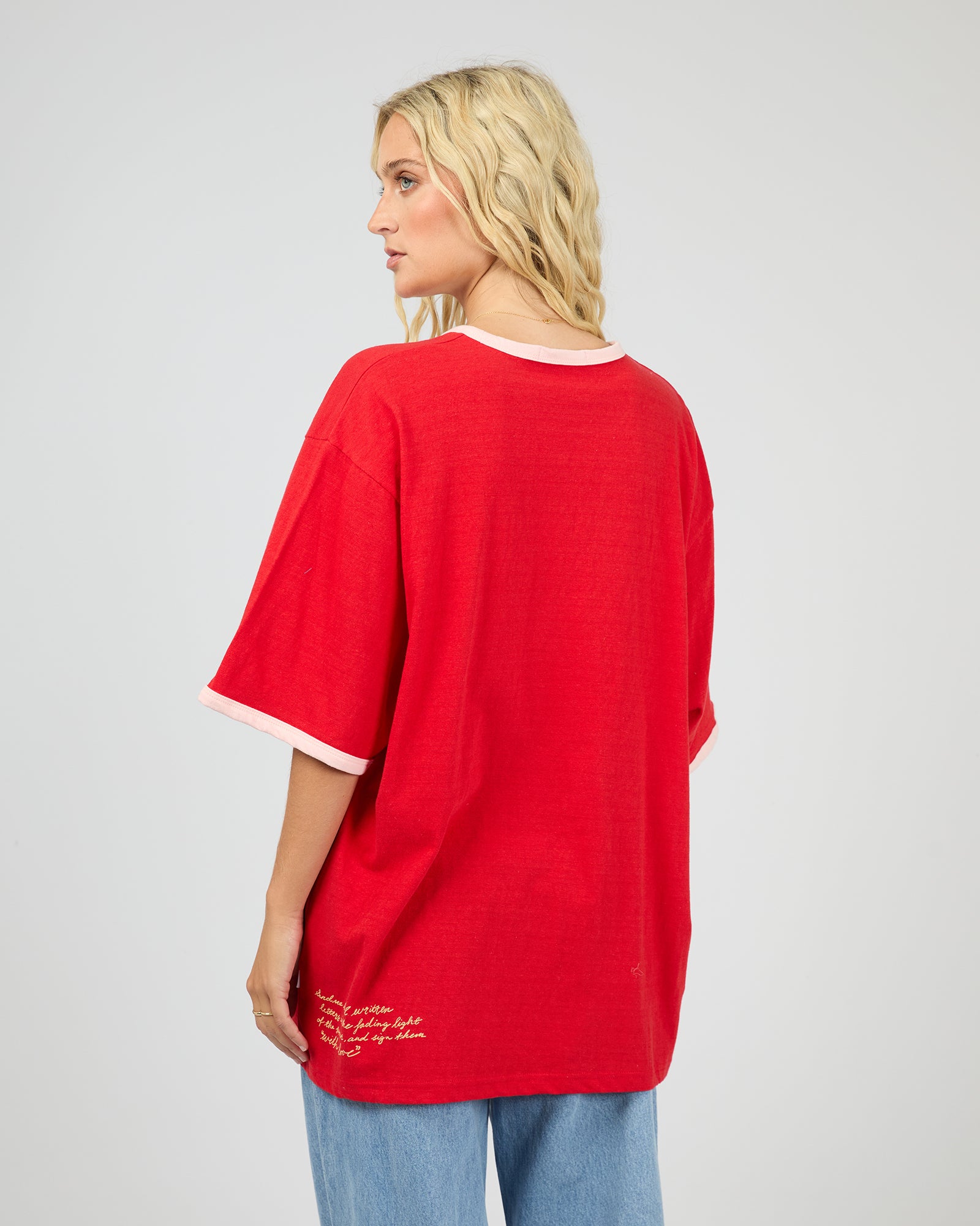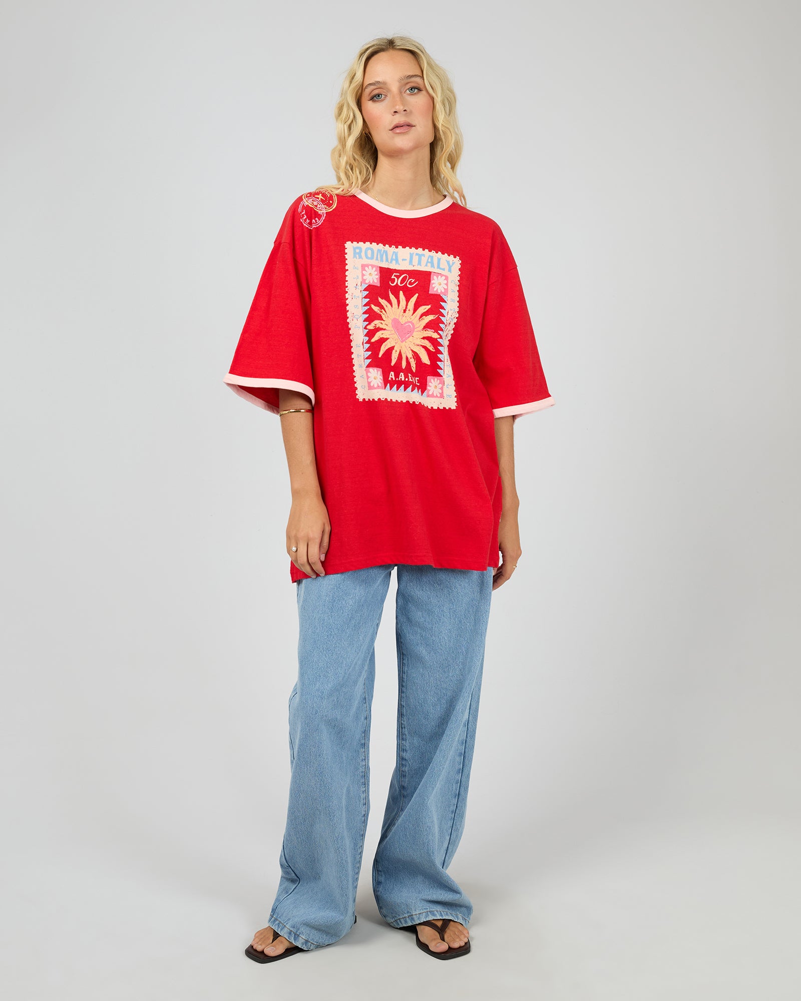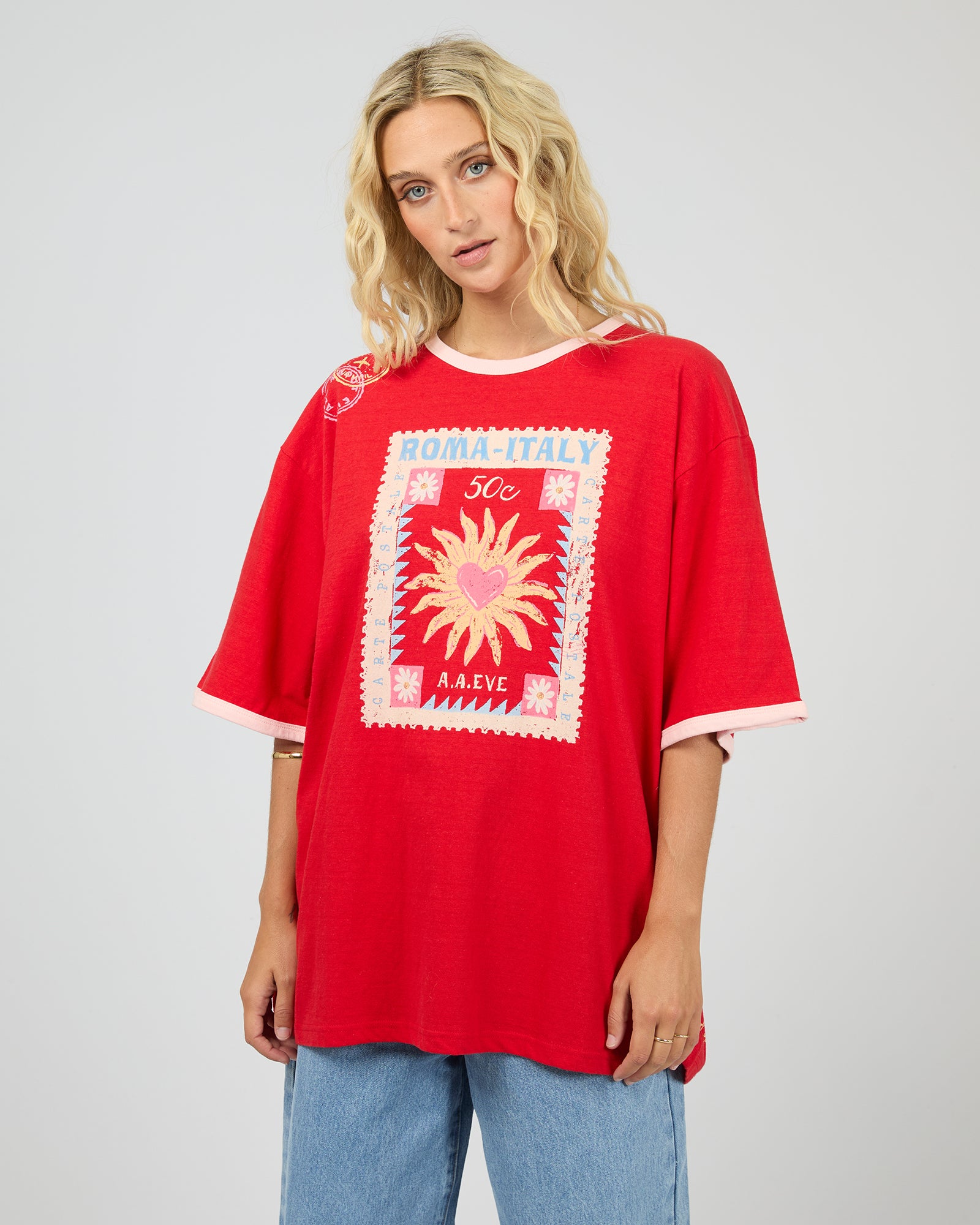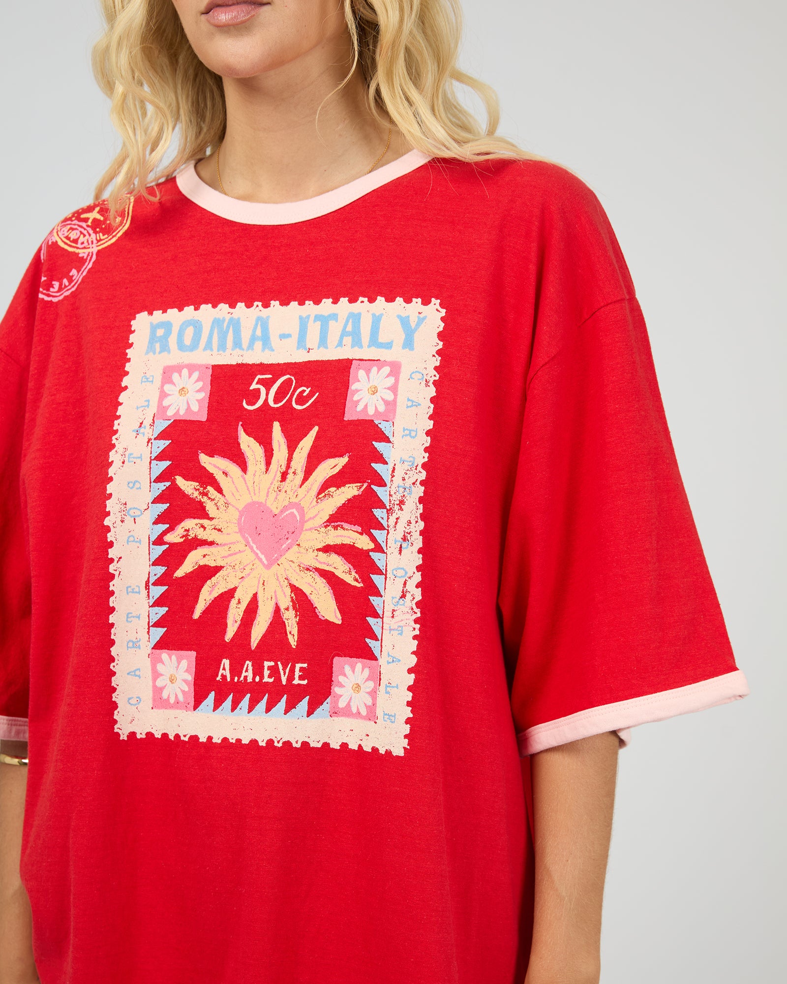ALL ABOUT EVE POSTCARDS OVERSIZED TEE - RED