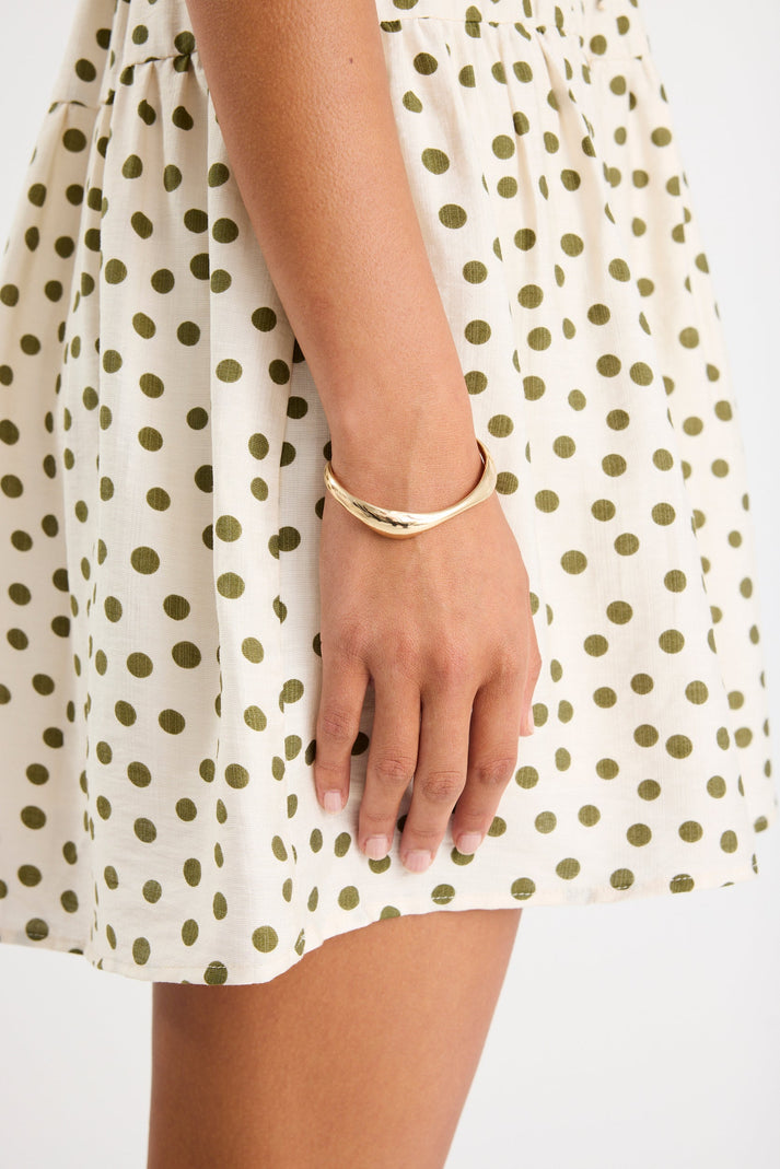 The Prato Dress by Ivy + Jack is playful, flattering, and made for easy days that still call for a little extra style. The shirred back gives you a flexible, body-hugging fit, while the tiered skirt adds movement and flow. Adjustable tie-up straps offer a personalised fit, and the khaki polka dots bring a fun, retro edge that feels fresh and wearable.