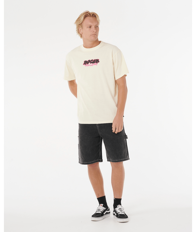 Stand out in the Raw Energy Bubble Tee, featuring acid-wash cotton jersey and oversized prints with raised puff detailing. The loose fit and placement artwork front and back give it a distinct edge made for laid-back days and loud statements.