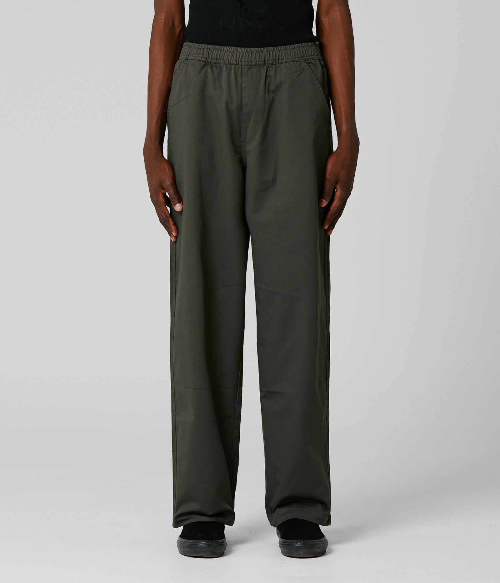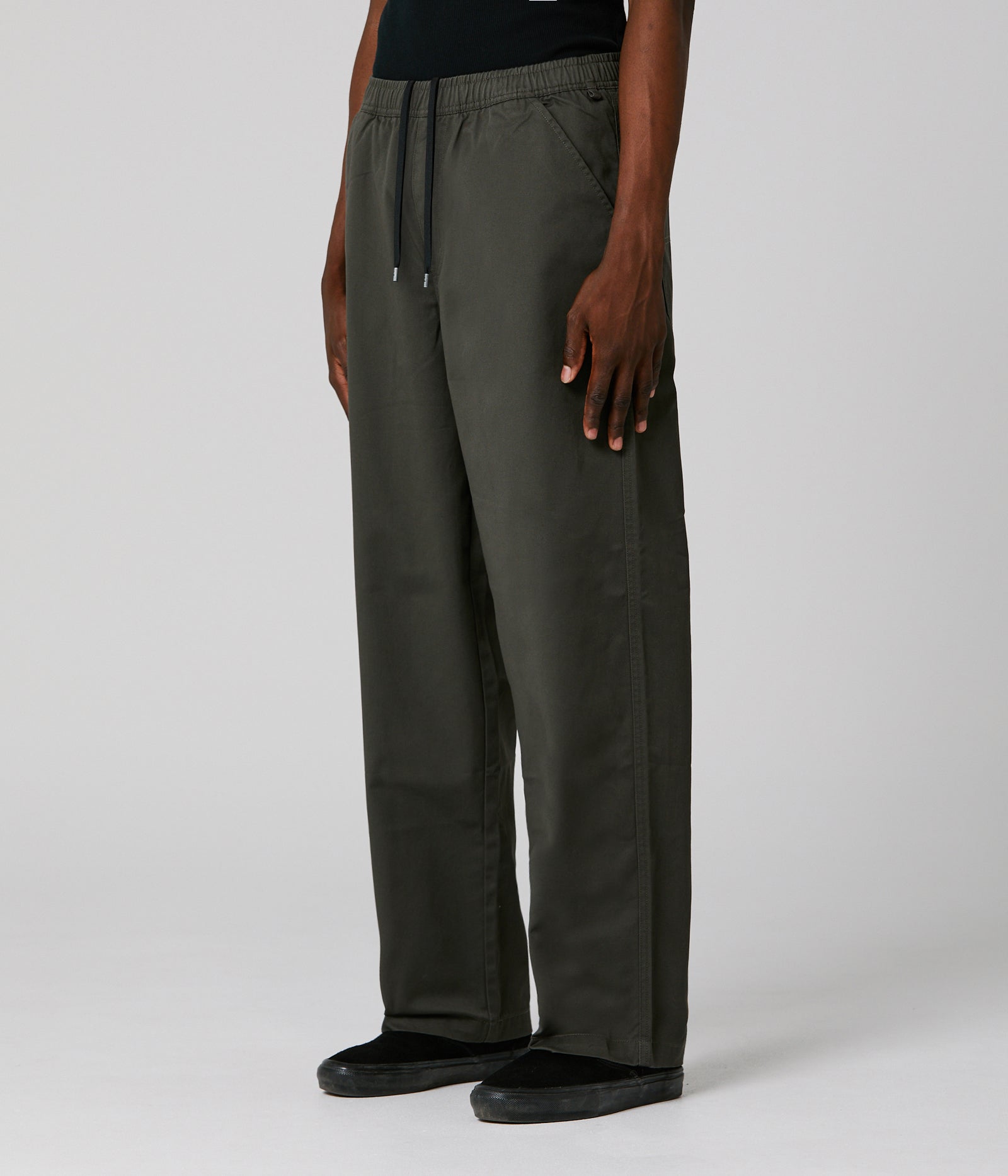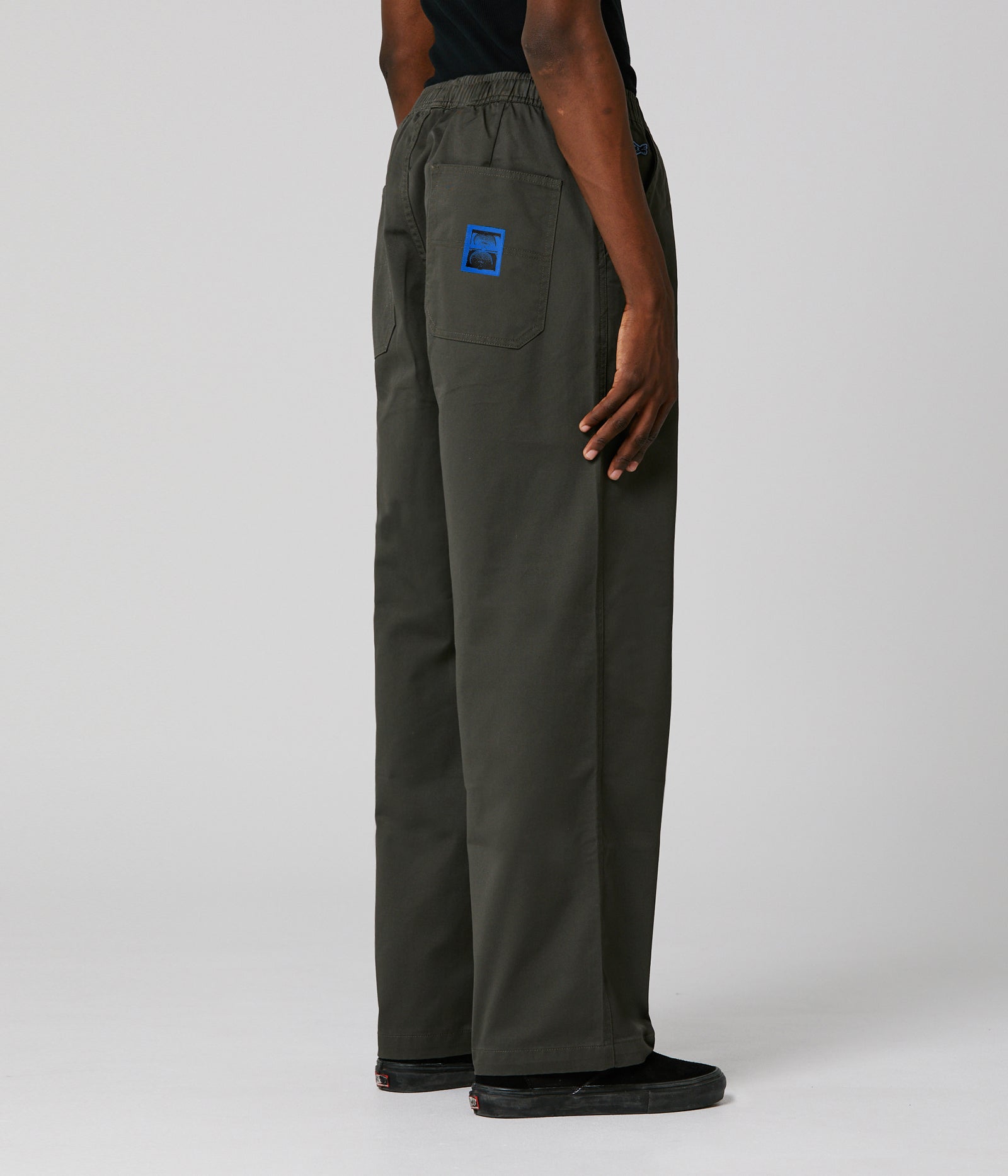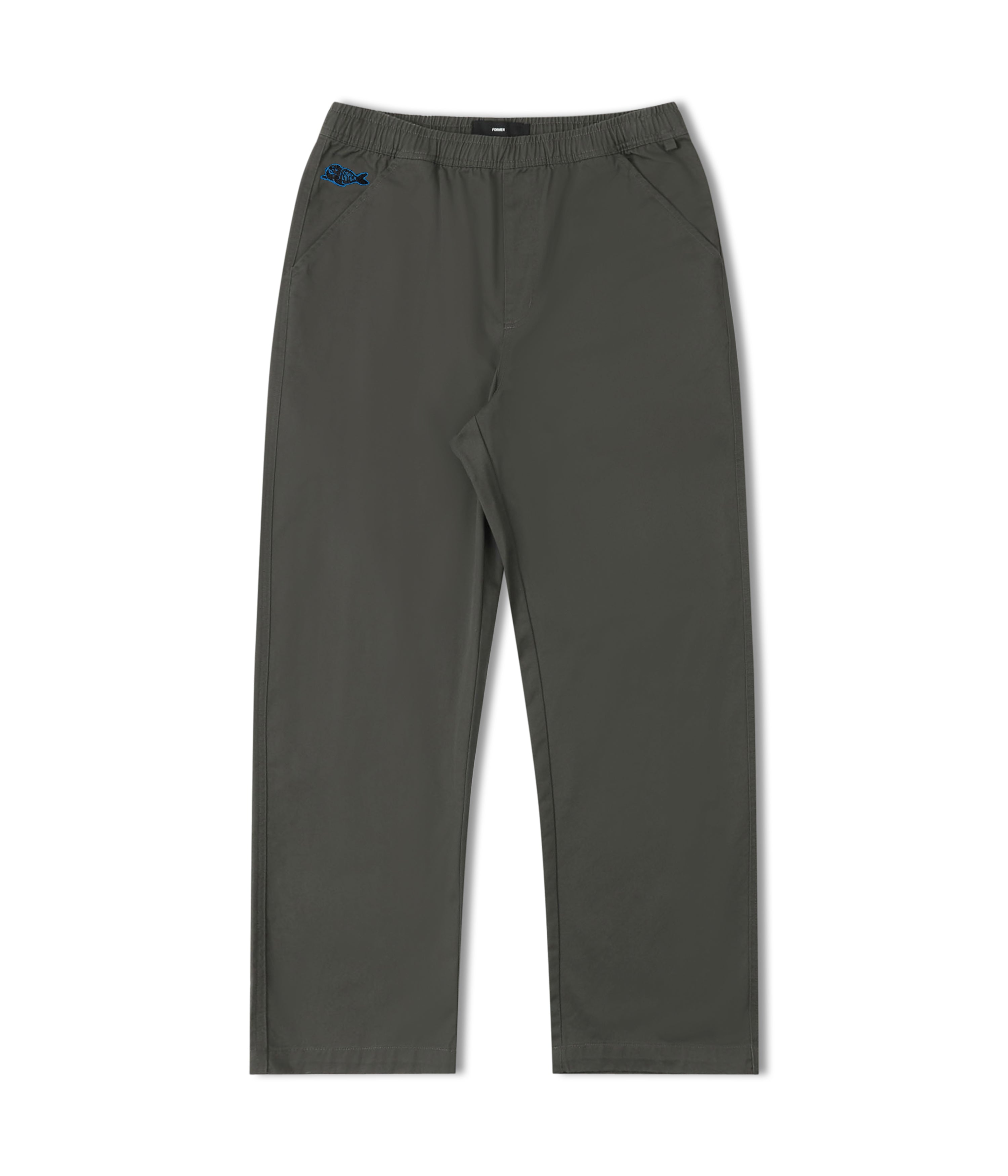 310GSM 97% COTTON / 3% ELASTANE // CUSTOM FORMER HARDWARE // STRAIGHT FIT // 18' LEG OPENING.