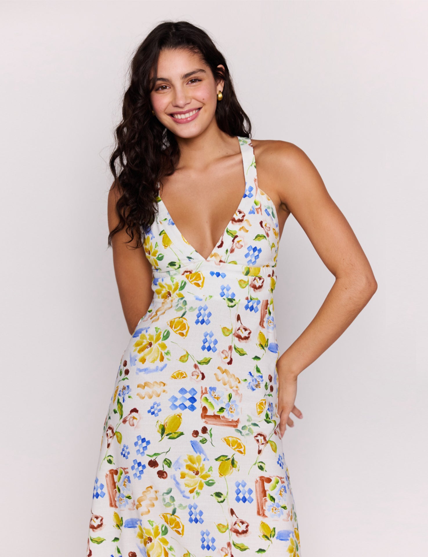 MINK PINK RIVIERA CROSS BACK MIDI DRESS - PICNIC