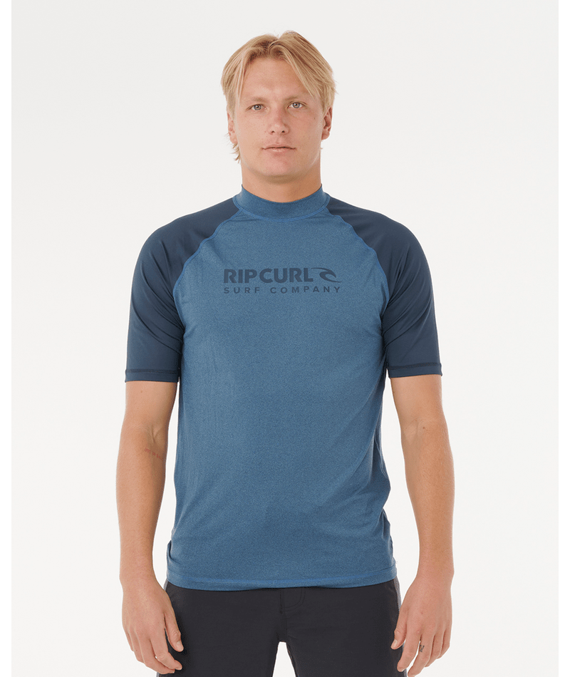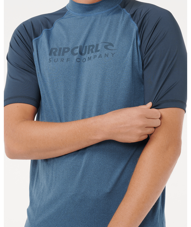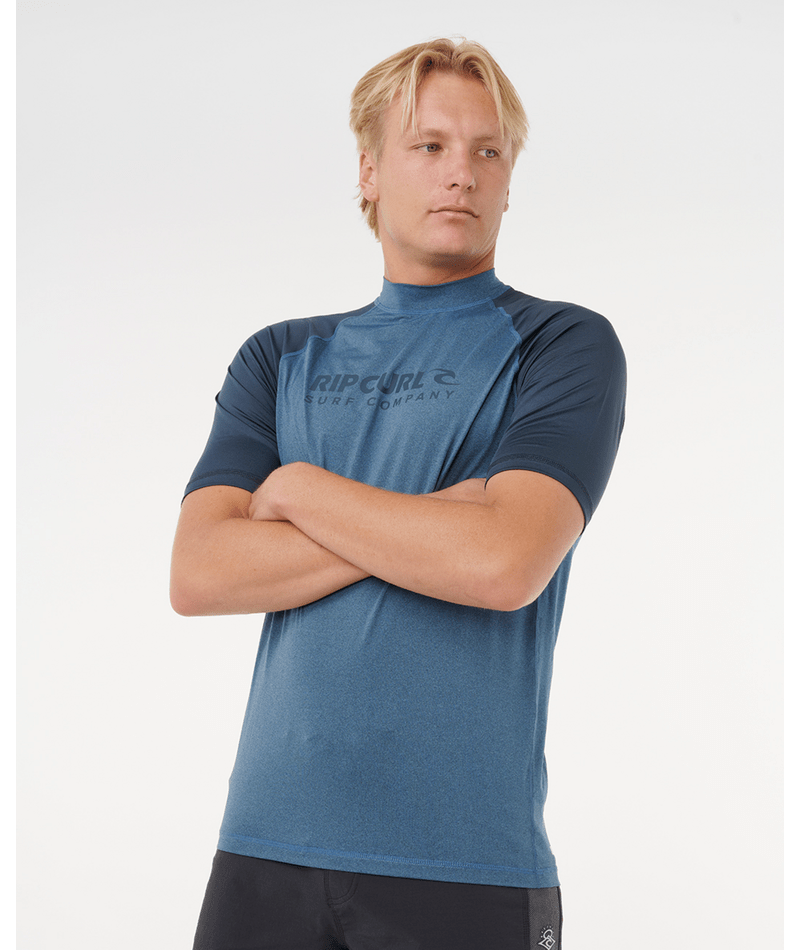 RIP CURL SHOCK UPF SHORT SLEEVE RASH VEST - NAVY MARLE