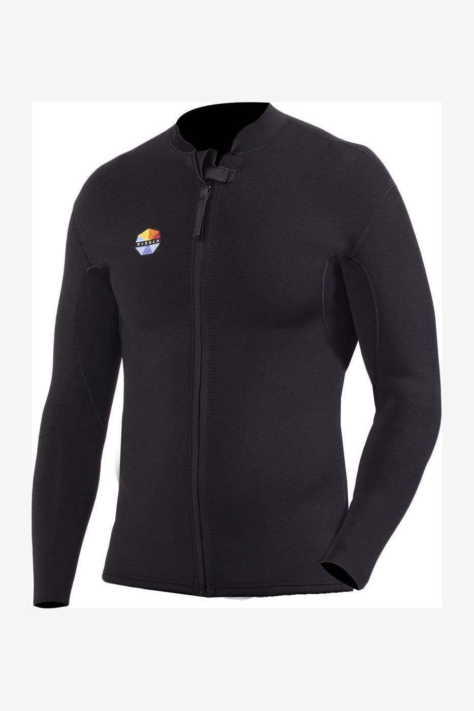 Front Zip Jacket is a 2mm neoprene front jacket in super stretch fabric with classic vissla patch. Triple glued inside and blind stitched sealed seams. Modern Performance" Tailored Fit" and Retro Styling.