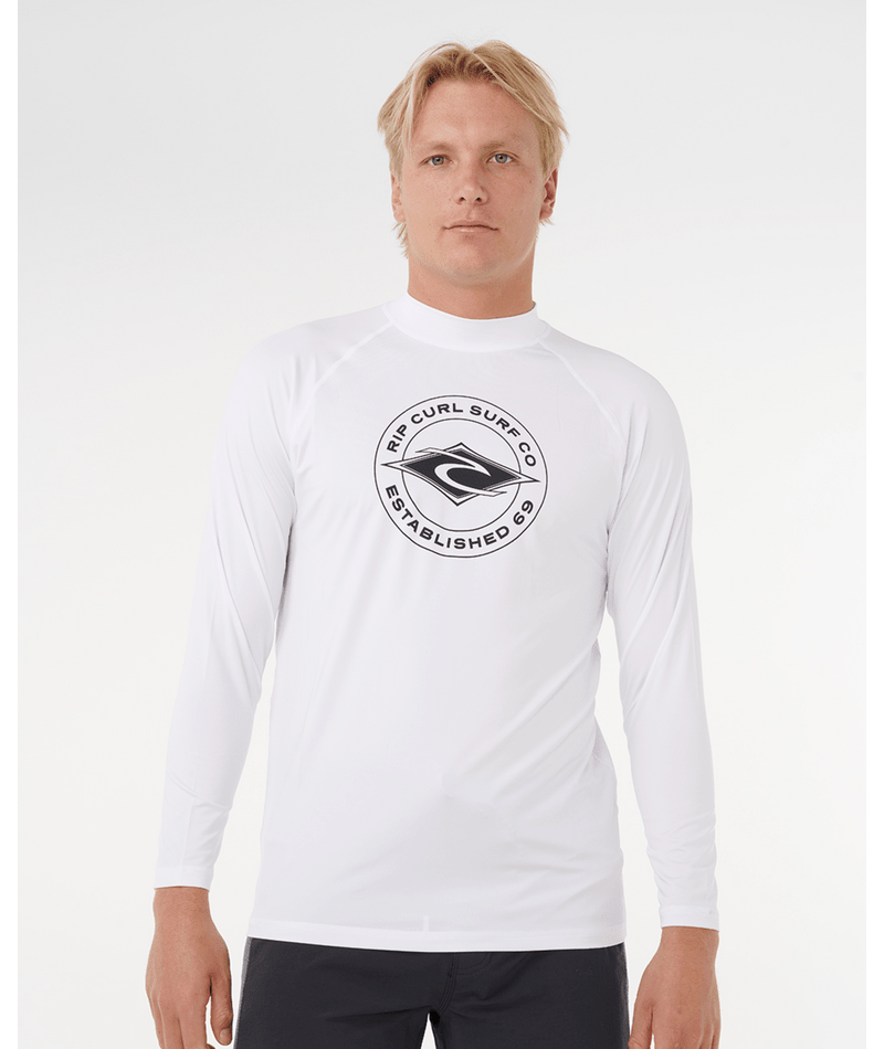 RIP CURL STAPLER UPF LONG SLEEVE RASH VEST - WHITE