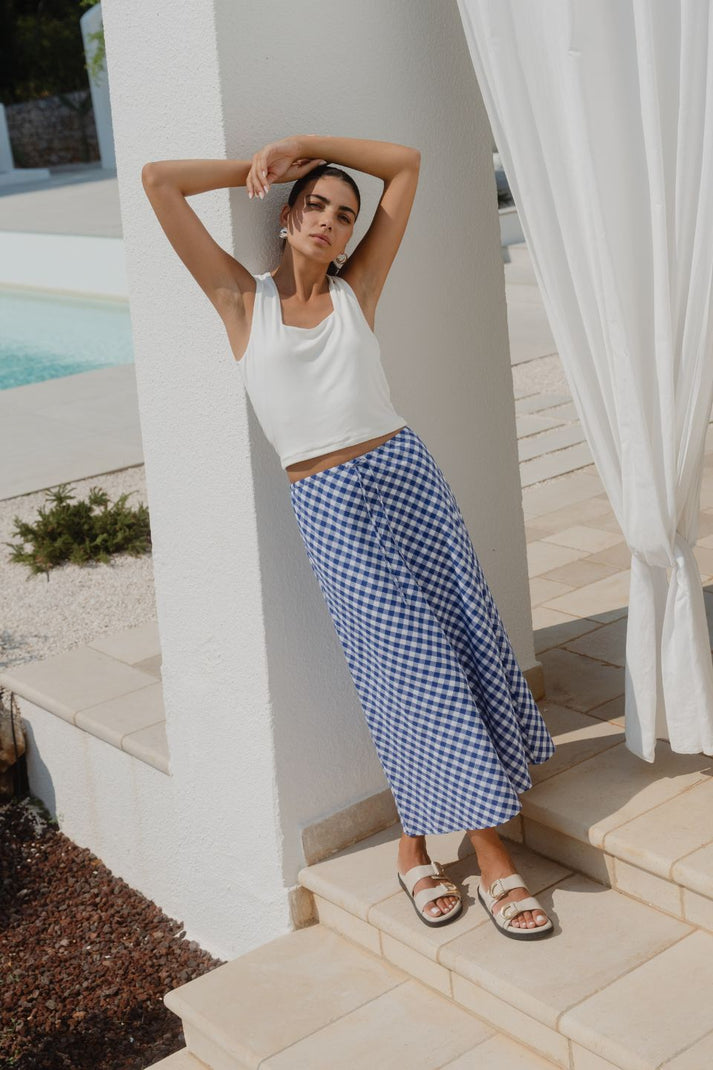 AMONG THE BRAVE SUMMIT TIE WAIST BAIS SKIRT - BLUE GINGHAM