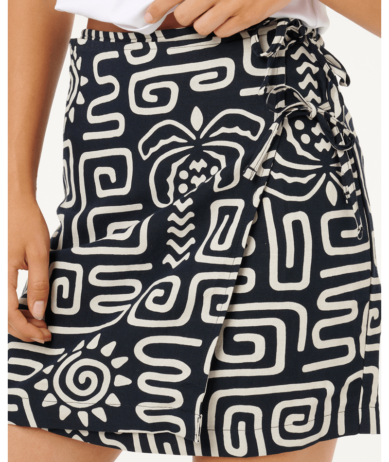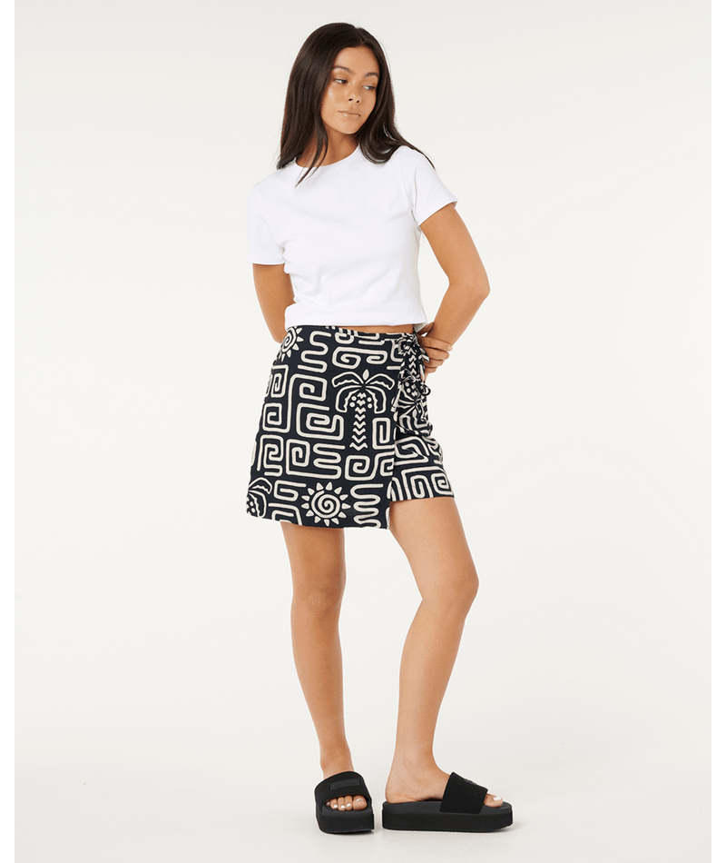 SUNSET LUAU WRAP SKIRT - BLACK/OFF WHITE