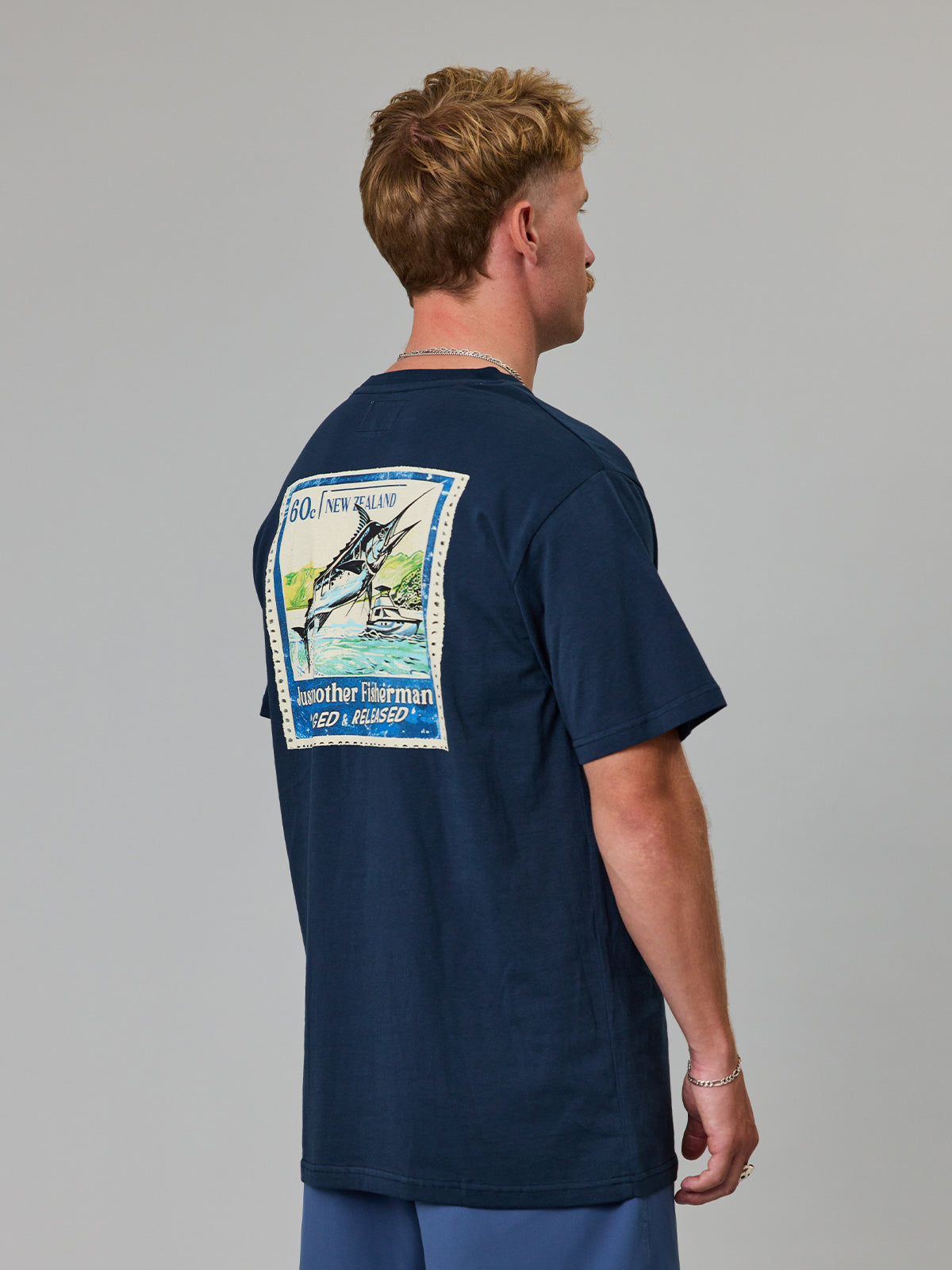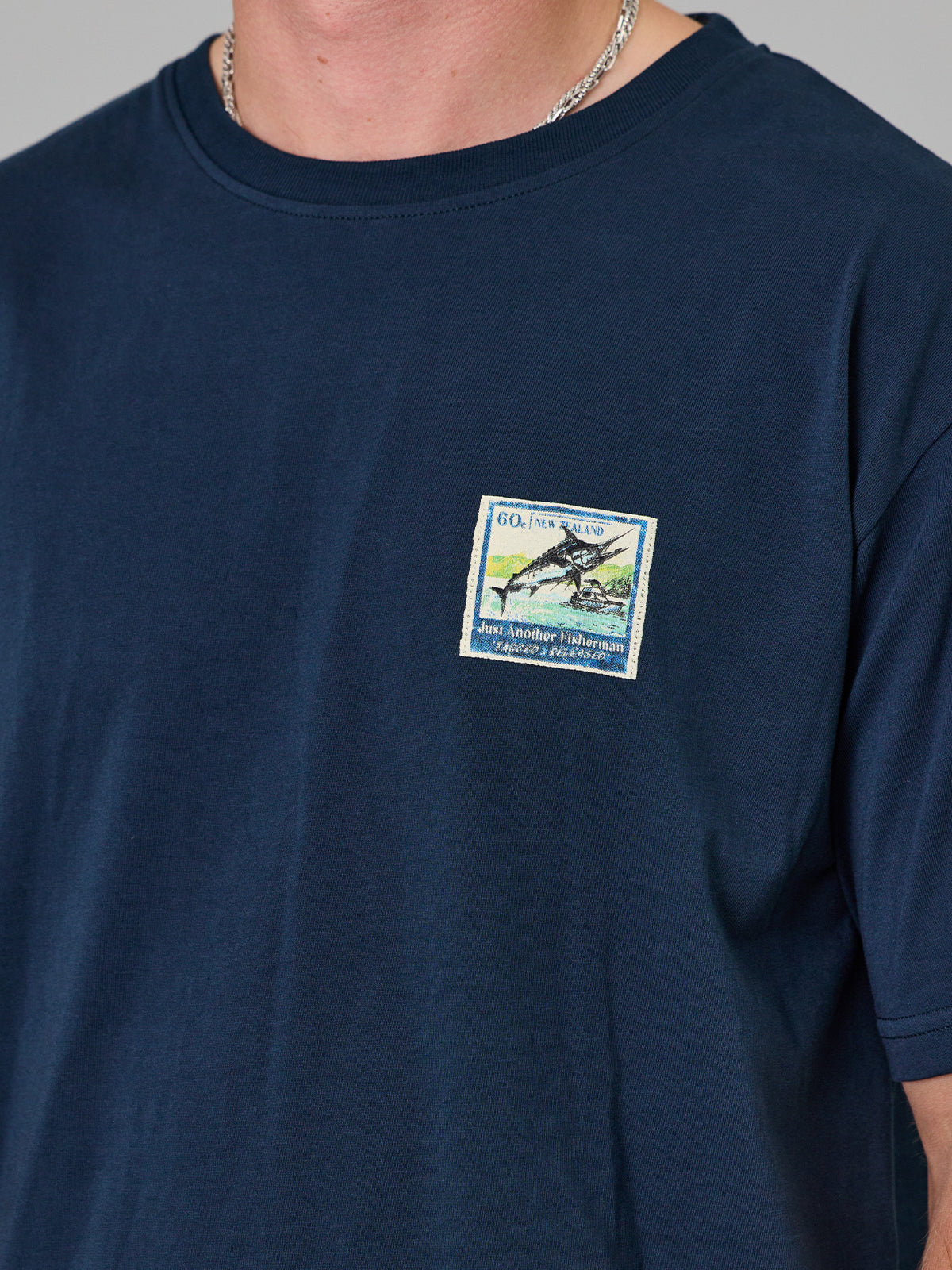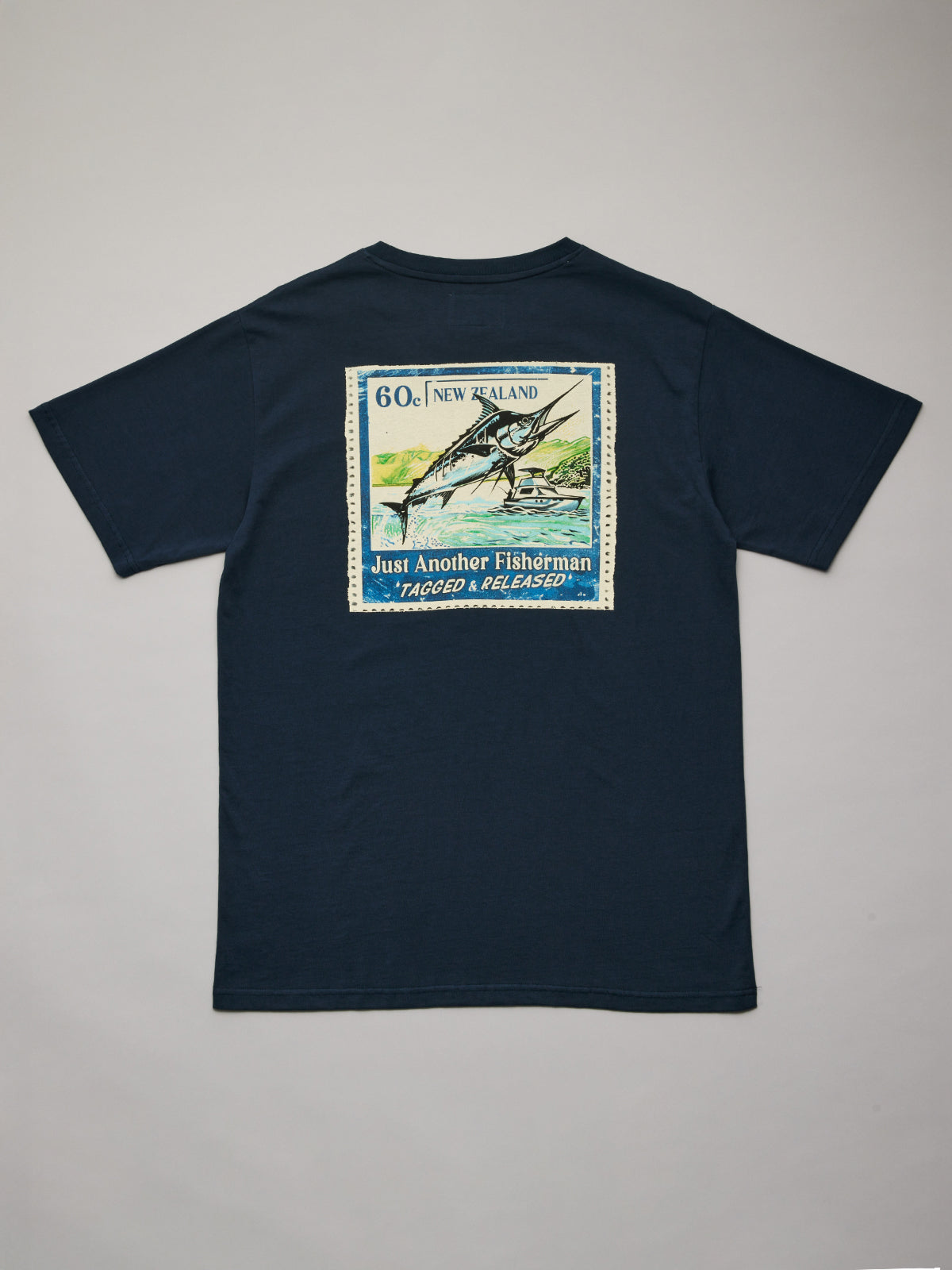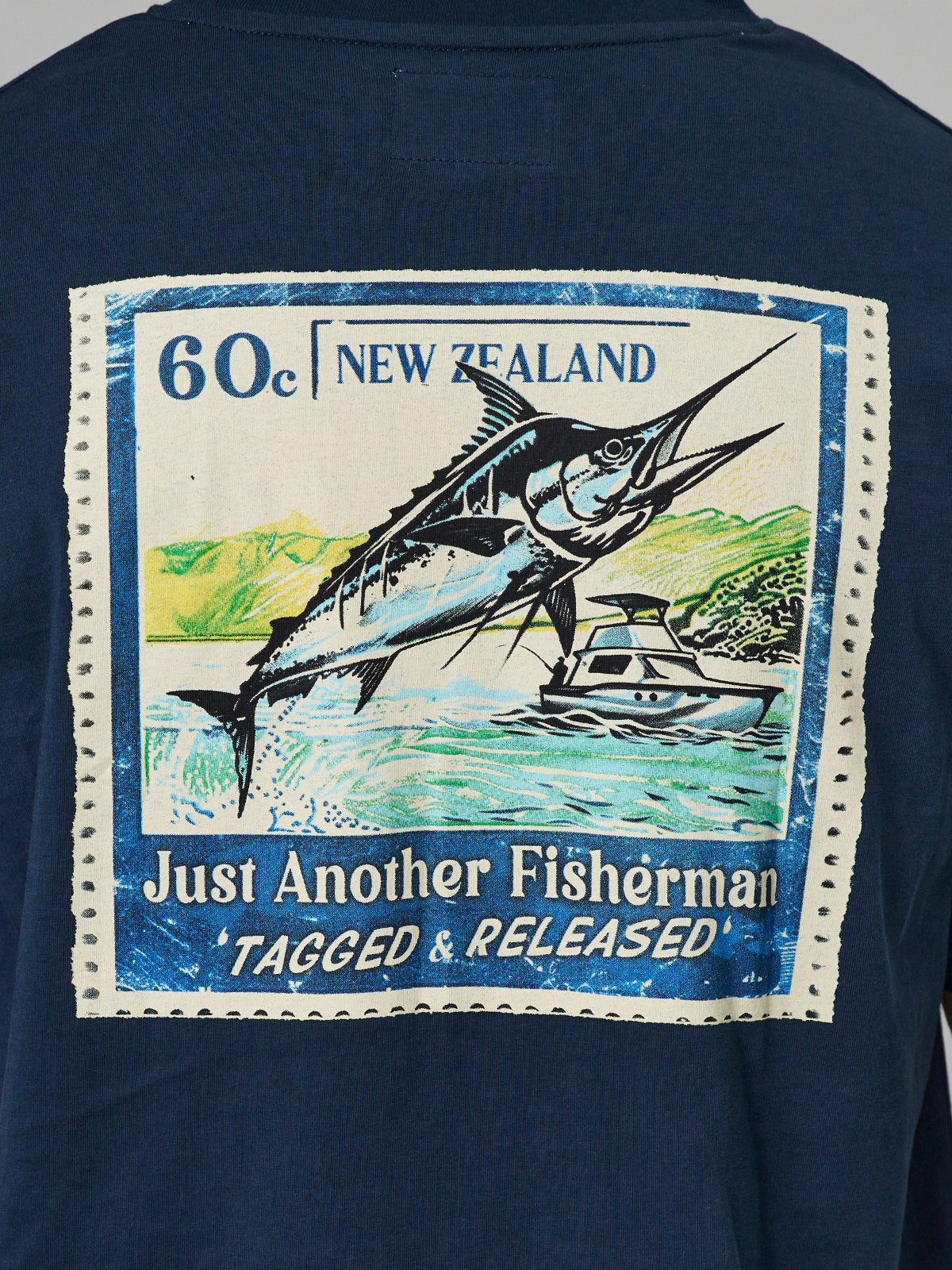 JUST ANOTHER FISHERMAN TAGGED & RELEASED SEA TEE - NAVY