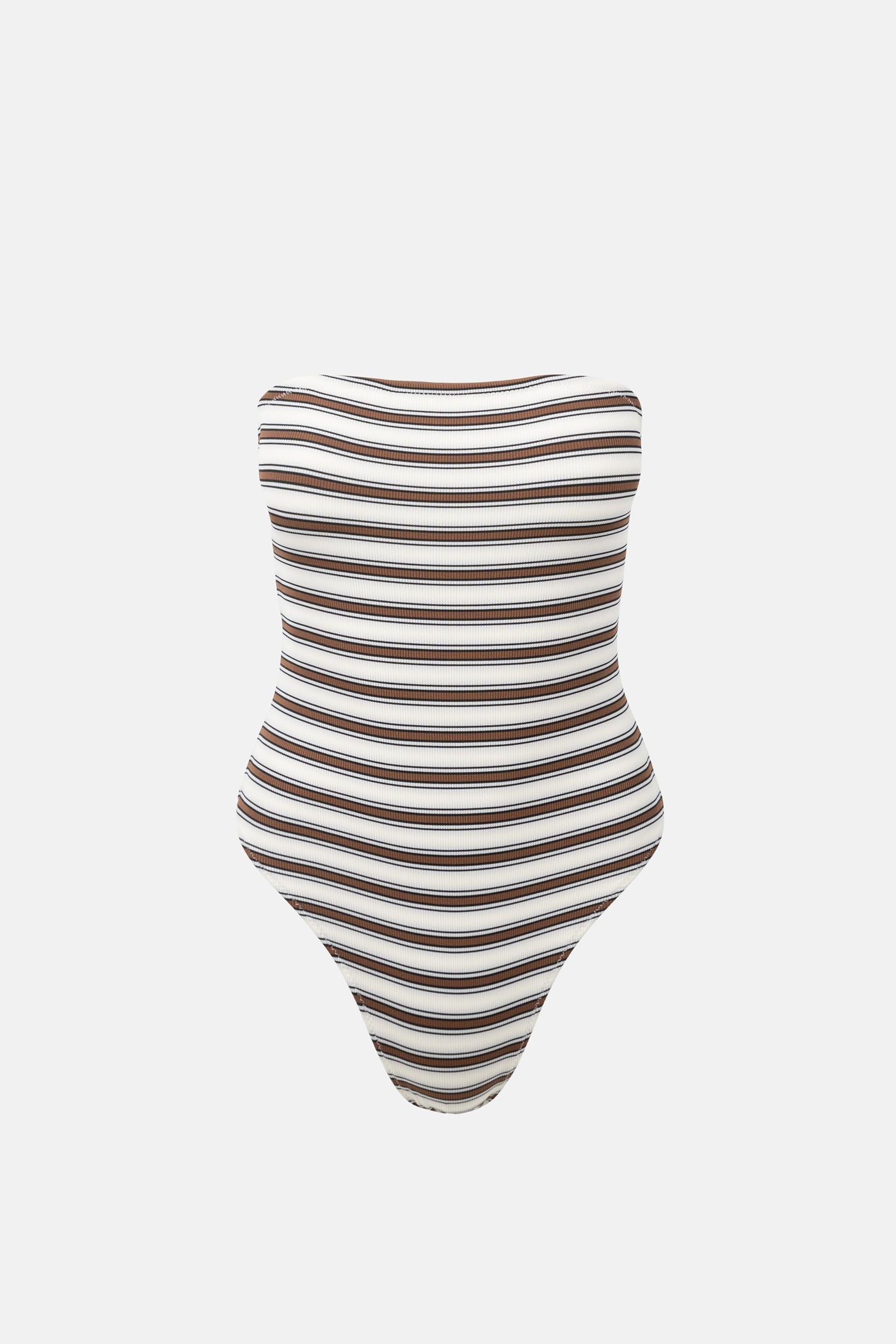 RHYTHM TAMI STRIPE STRAPLESS ONE PIECE - CHOCOLATE