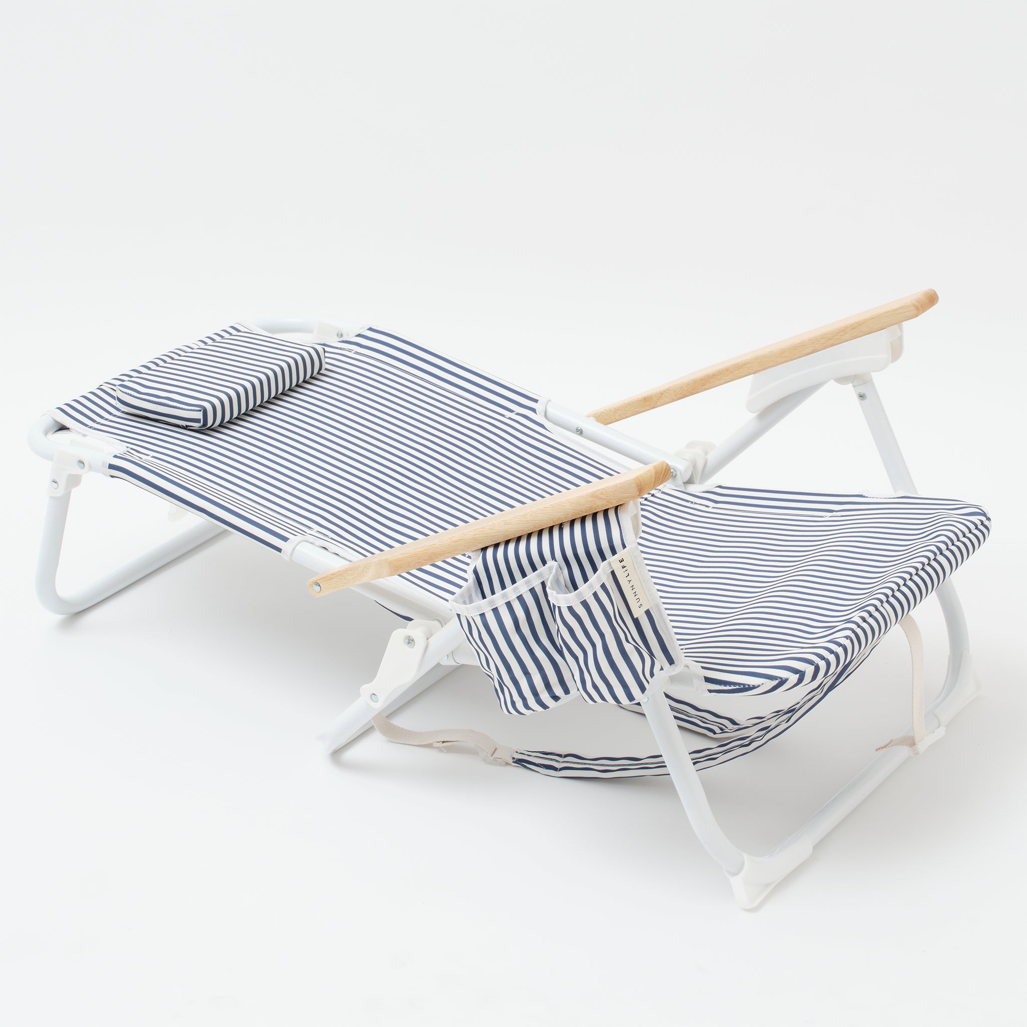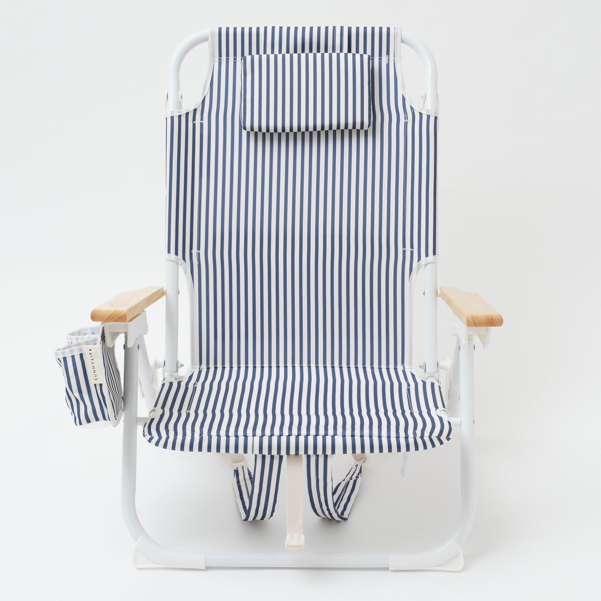 LOUNGE IN LUXURYA premium option for those who spare no luxury, The Resort Luxe Beach Chair features a drink holder, an insulated zip-up cooler pocket and an adjustable padded headrest. With chic wooden armrests and 6 adjustable settings to sit or fully recline, this timeless classic will elevate your outdoor style with vintage stripes and a nautical colour scheme. Designed to come with you wherever you go, the Luxe Beach Chair also converts to a backpack for easy transportation. With The Resort Luxe Beach Chair, you can enjoy a little bit of luxury no matter where life takes you.