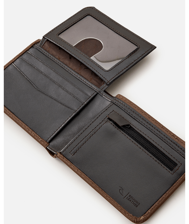The Wetsuit Logo RFID All Day Wallet keeps your essentials secure with multiple card slots, an ID window, and RFID protection in a classic leather build.