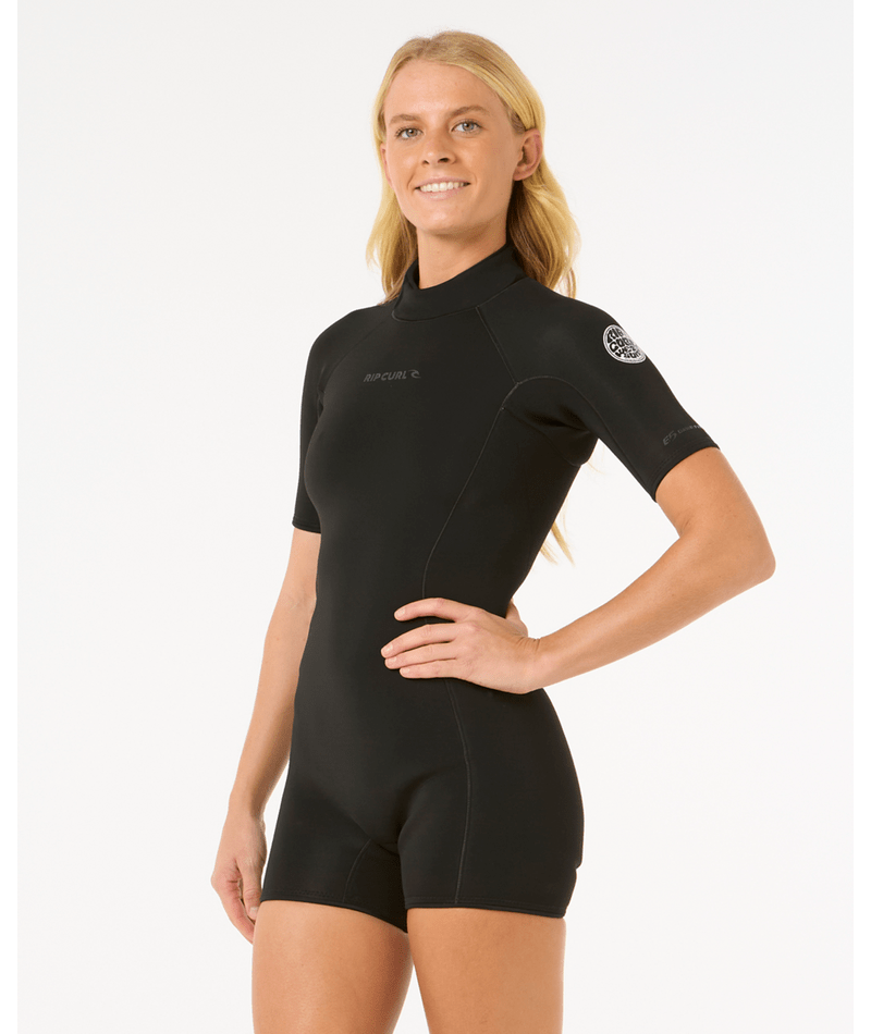 RIP CURL WOMENS DAWN PATROL 22 SHORT SLEEVE ECO SPRING - BLACK