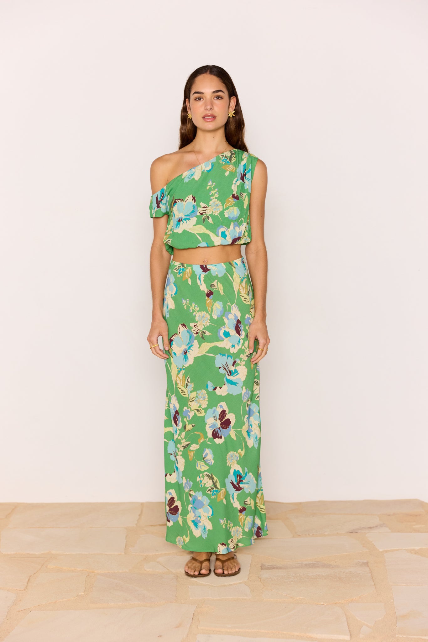 MINK PINK ZOE BIAS MIDI SKIRT - GREEN FLORAL
